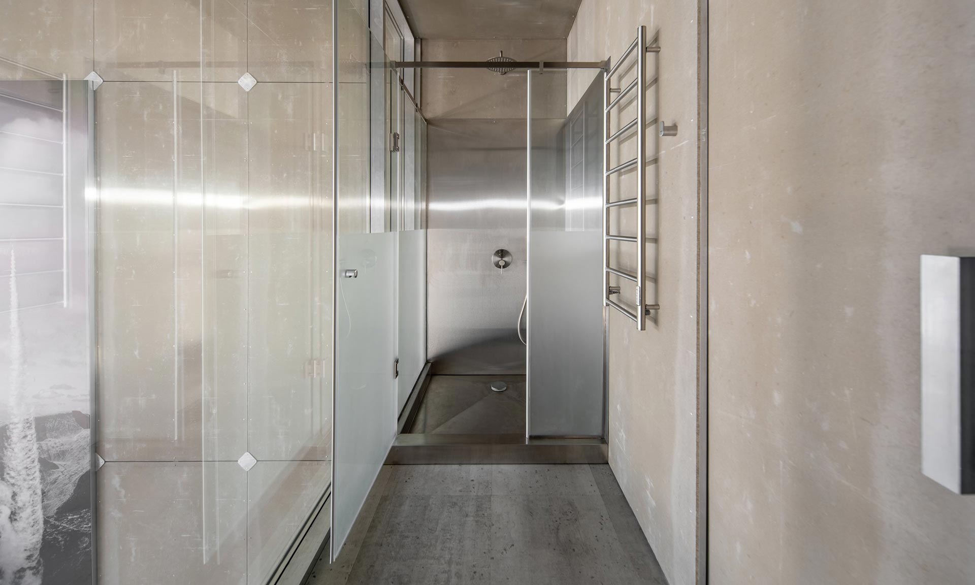 Hangár na utajeném místě má užitnou plochu asi 400 metrů čtverečních, zázemí pak asi 94 čtverečních metrů. Najdeme zde vše nezbytné. Ještě v přízemí hangáru je posezení pro briefingy. Po schodech se pak stoupá do prostoru, který připomíná obývací pokoj s jídelním stolem a plnohodnotnou kuchyní. Dále zde najdeme kancelář, skladovací prostory, šatnu, čtyři postele a hygienické zázemí. Design je postaven na surových materiálech, nerez oceli, hliníku, betonu a hřejivých dřevěných plochách u nábytku. Výsledek je perfektní a do detailu propracovaný.