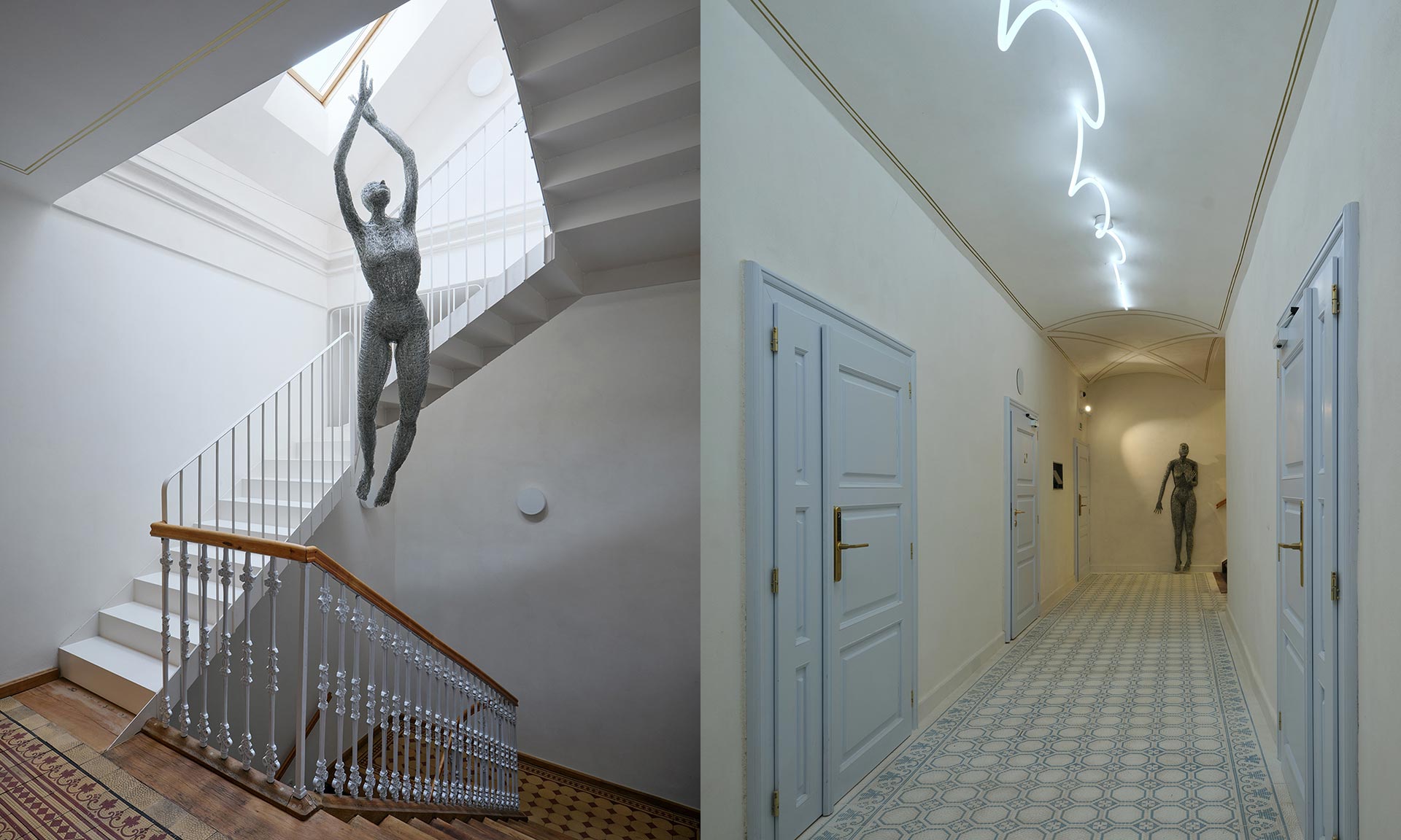 „Projekt pracuje s principem přirozeného vrstvení. Historie zde není exponátem, ale živou součástí prostoru. Zachovány byly původní malované stropy, historické dveře, kamenná ostění i vybrané podlahy. Každá ze sedmi ubytovacích jednotek je originál bez opakování konceptu, s důrazem na integraci umění jako přirozené součásti interiéru. Materiálová koncepce kombinuje repasované dřevo, přírodní kámen, mramor, minerální omítky, moderní, ocelové prvky. Současné technologie včetně inteligentního systému Loxone jsou plně integrovány a vizuálně potlačeny. Specifikem projektu je propojení rolí architekta, investora a provozovatele, které umožnilo kontinuální kontrolu nad kvalitou od návrhu po každodenní provoz. Dům je aktivně propojen s místní komunitou, spolupracuje s lokálními tvůrci a zapojuje se do kulturního života města,“ dodává.