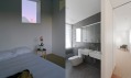 Ovšem uvnitř nás přivítá prostor, jenž důmyslně vytváří dojem otevřeného a prosvětleného prostředí, zároveň klade důraz na citlivé použití materiálů a zanechání původního pískovcového kamene na mnoha místech v domě jakožto připomínky jeho historie a původní podoby. Dalším z důrazných prvků interiéru jsou rozlehlé posuvné dveře. Nacházejí se na pomezí předsíně se společnou místností, která leží nalevo od vstupu a naproti od první ložnice, a slouží jako zdi s nepřekonatelnou výhodou, že je lze téměř zcela odstranit.