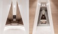 První podlaží bytu, které sahá až do výšky osmi metrů, nabízí na jedné straně ložnici a protilehlou pracovnou, na druhé straně úložné prostory a velmi nezvyklou koupelnu. Například sprchový kout je koncipován jako prostor s proskleným kvádrem vystupujícím do prostoru. Za zmínku stojí i balkón se stromem zapuštěném v organicky tvarované krajině.