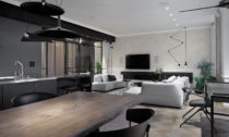 Dvojice architektek Klára Valová a Eva Mohylová ze studia SMLXL navrhla interiér bytu na pražských Vinohradech. Luxusní apartmán je laděn do industriálního stylu. Jeho dominantou je výrazný shluk svítidel od španělské značky Marset nad masivním jídelním stolem.