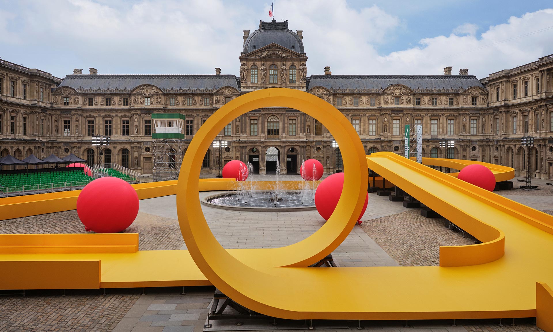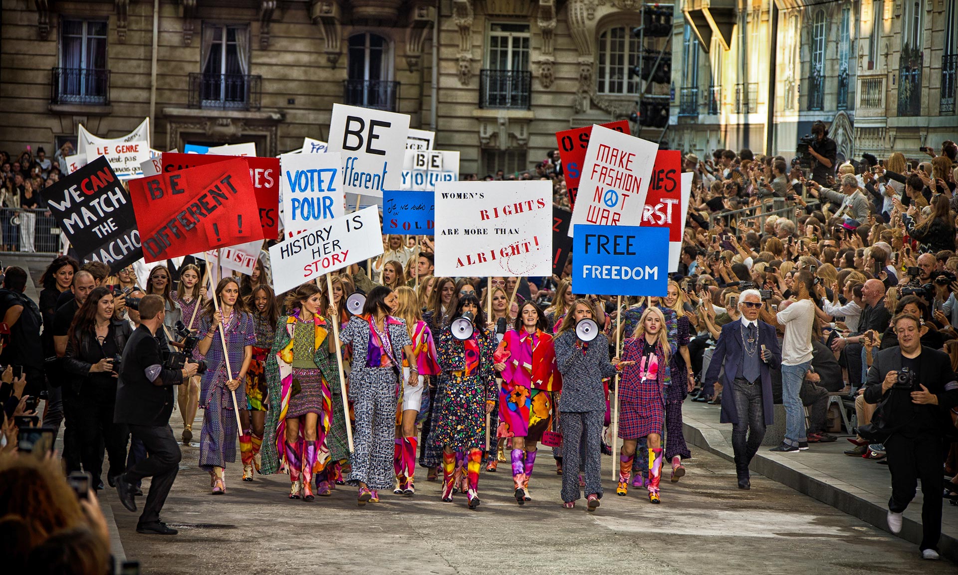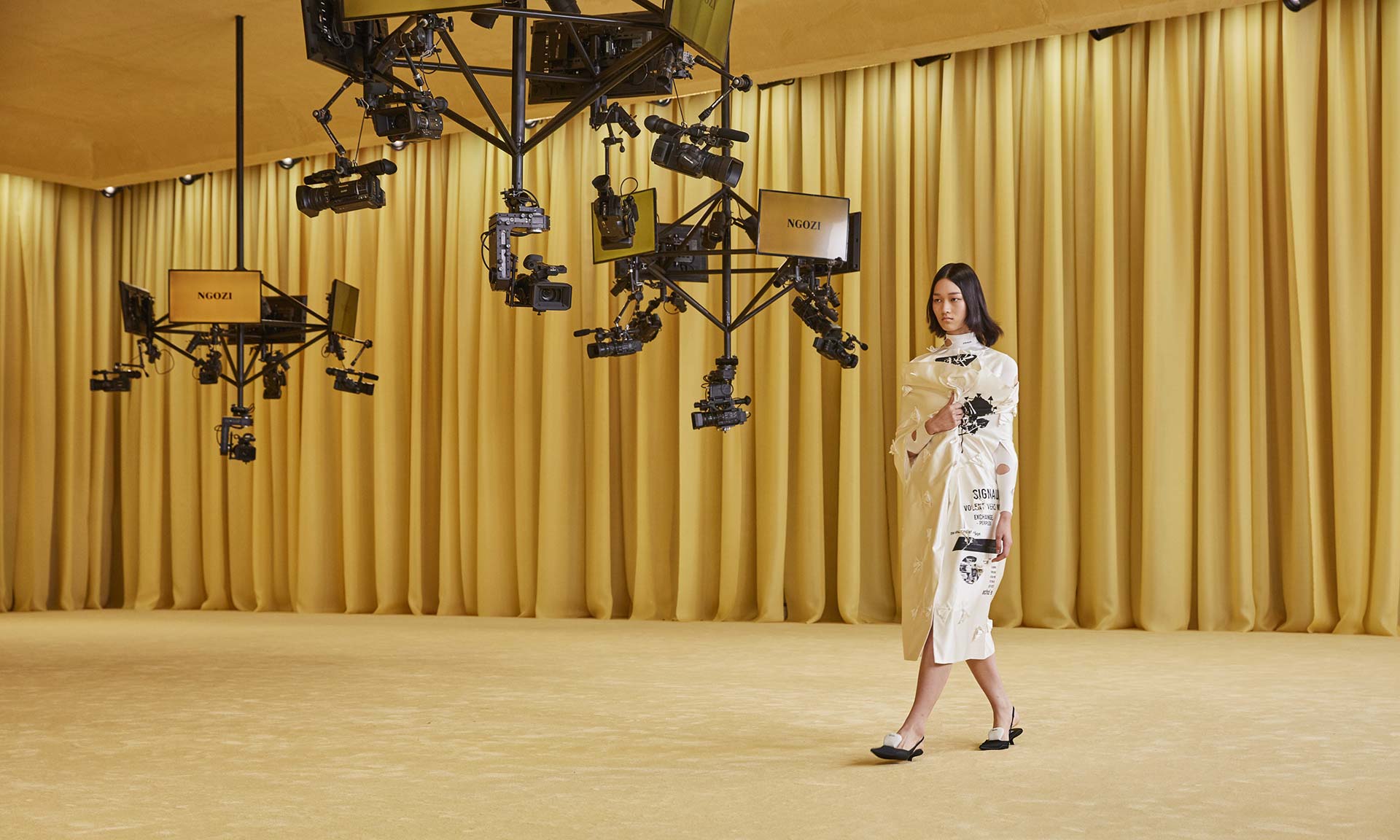 „První sál představuje počátky módních přehlídek z počátku 20. století, kdy se móda prezentovala vybranému okruhu klientely, převážně v salonech samotných návrhářů. Druhá část výstavy sleduje období, kdy se módní přehlídky s nástupem prêt-à-porter přesunuly ze salonů do měst a propojily se se subkulturami. Třetí část výstavy začíná přelomem tisíciletí, kdy se módní přehlídky staly velkolepými mediálními událostmi s rostoucími rozpočty a vlivem módních korporací jako LVMH či Kering. Karl Lagerfeld stanovil nová měřítka s přehlídkami značky Chanel v pařížském Grand Palais – od dokonale inscenovaného supermarketu přes start rakety až po pochod demonstrantů na repliku pařížského bulváru. Čtvrtý sál se věnuje nedávné minulosti. Ještě před rokem 2020 se módní přehlídky stále více orientovaly na digitální dopad, pandemie COVID-19 však tento vývoj výrazně urychlila,“ dodávají k obsahu výstavy.