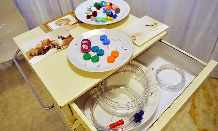 Na přehlídce Designblok 2010 byste ve čtvrtém patře ve dveřích 459 neměli minout stánek čtyřčlenné skupiny Design Help, který vystavuje a prodává stejnojmennou kolekci šperků vytvořených z recyklovaného bezpečného odpadu nemocnic. Výtěžek z prodeje náušnic, náhrdelníků, broží pohybujících se v řádech stovek korun půjde na kultivaci nemocničního prostředí.