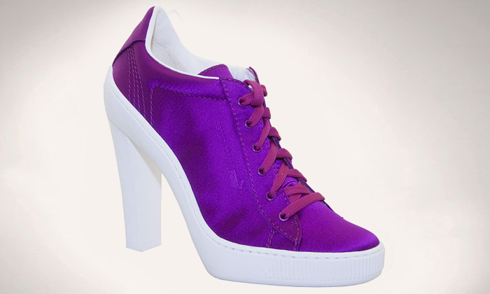 Nicméně barvy jsou to nejobyčejnější na této kolekci. Sergio Rossi není obyčejný návrhář a proto Puma teniskám přidal gumový podpatek. Vypadají jako nám známé Clyde tenisky ale v elegantní verzi. Jako materiál byl použit sexy satén nebo kůže a barvy jako Lolita Pink, Speedy Black nebo Delovely Lavender.