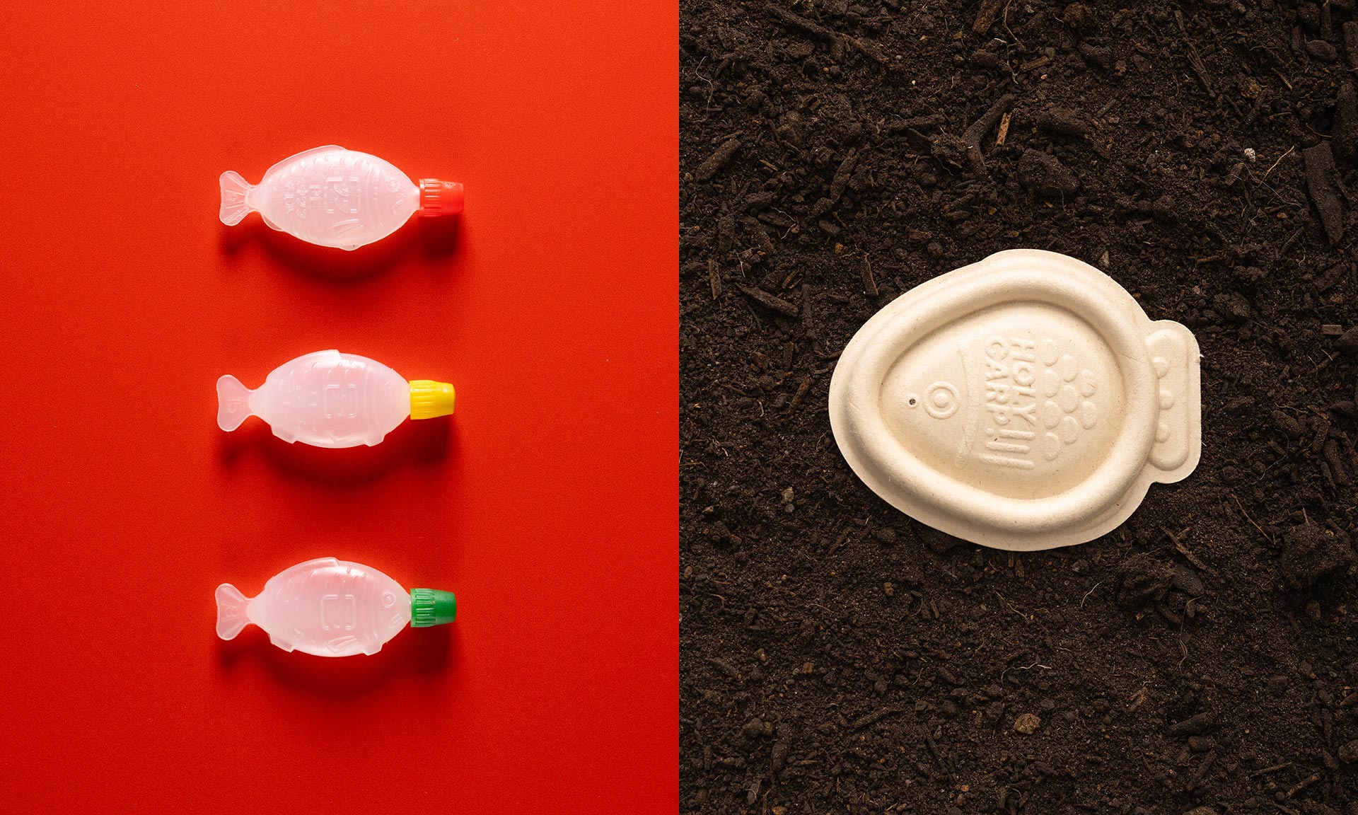 Australské designérské studio Vert Design navrhlo pro značku Heliograf obal Holy Carp, který je prvním sojovým kapátkem na světě bez obsahu plastu. Malou plastovou rybičku, která se dává k jídlu roznášenému domů, má nahradit ekologická verze. Biologicky rozložitelný obal je možné zasadit do hlíny a nechat rozložit. Ušetřit by se tak mohly zbytečné tuny obalového plastu produkovaného každý rok.