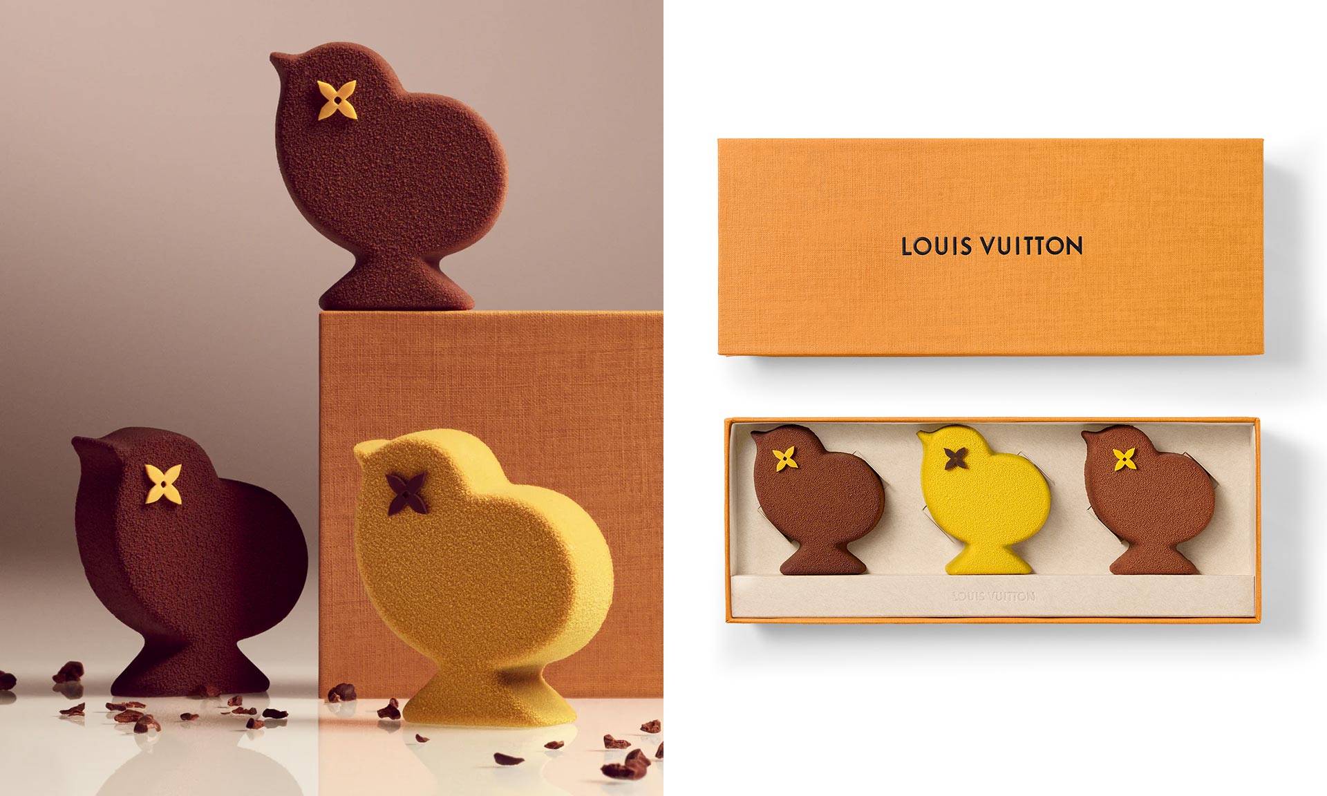 Po velkých úspěších předešlých kolekcí, které byly velmi rychle vyprodané, přichází francouzský módní dům Louis Vuitton s další velikonoční kolekcí čokolád. I tentokrát ji pro značku připravil slavný čokoládový mistr Maxime Frédéric a to hned jako tři stále dostupné produkty. Největším produktem je čokoládová taška, menším pak šestice menších taštiček v jedné krabičce a jako poslední velikonoční čokoládová kuřátka.