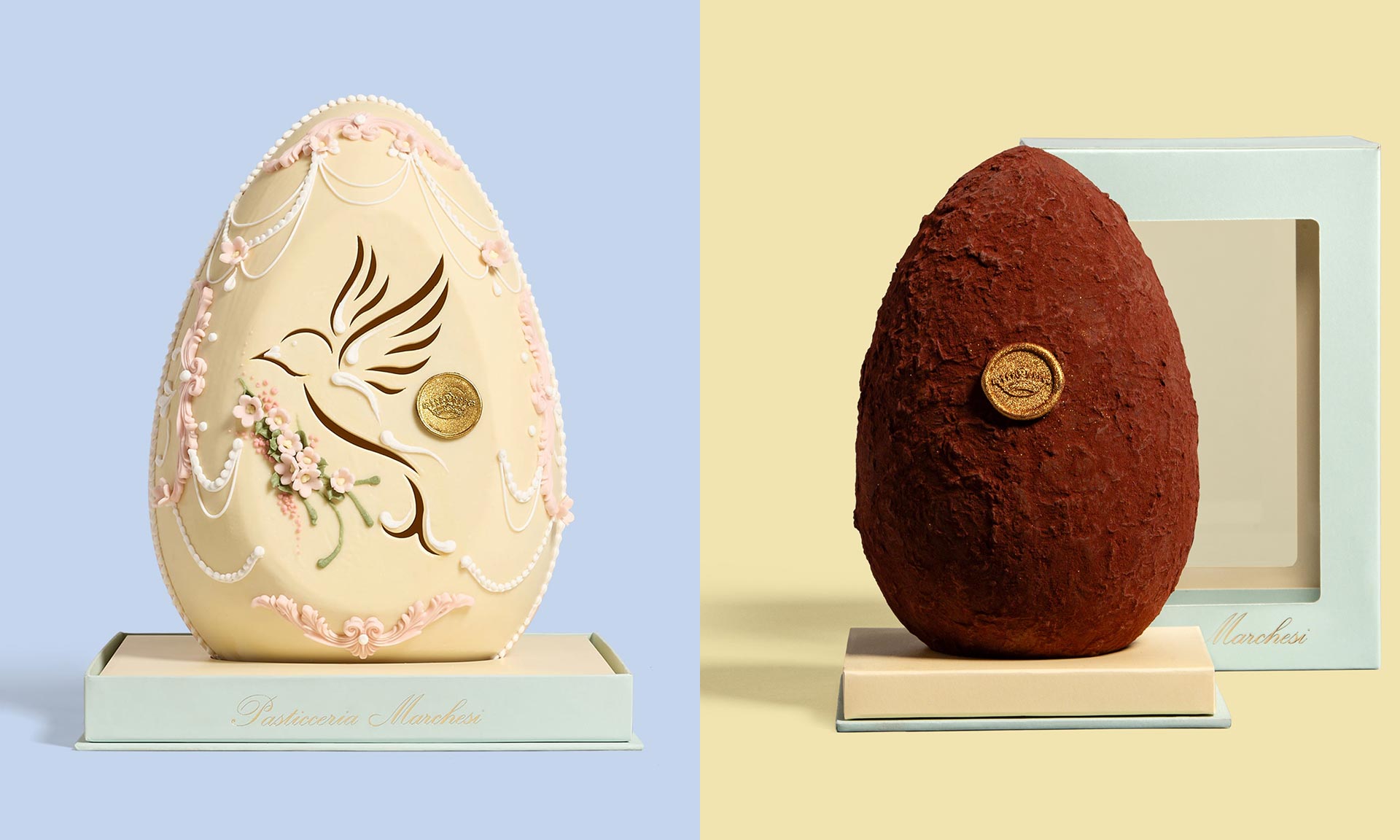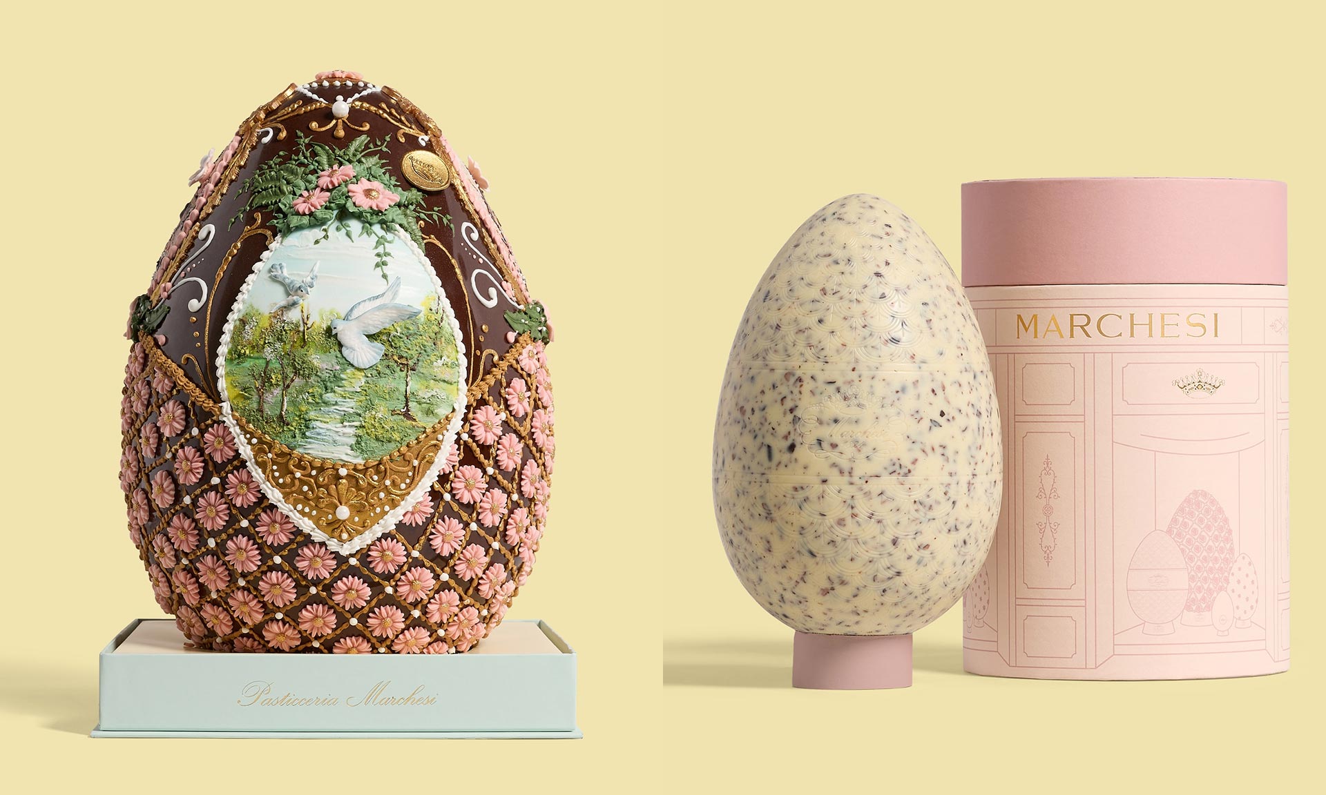 Milánská cukrárna Marchesi, která má dlouhou historii sahající až do roku 1824, se specializuje na luxusní zákusky, dezerty a čokolády. Speciálně na Velikonoce její cukráři připravili kolekci čokoládových vajíček různých velikostí, barev, chutí a vůní. Nejluxusnější jsou velká čokoládová vejce s váhou až dva kilogramy, která jsou ručně zdobená květinami nebo ptactvem.