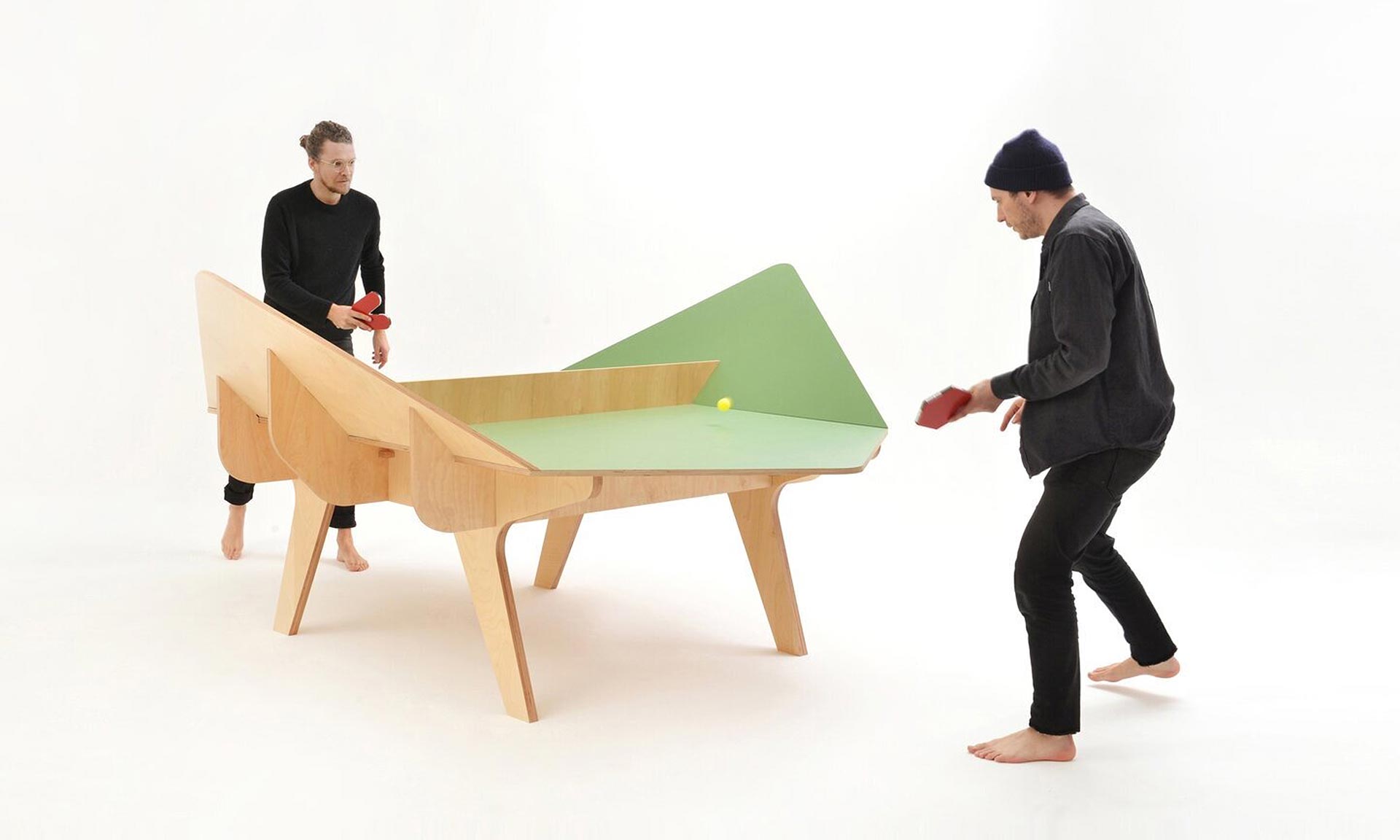 Pařížské designérské studio Exercice navrhlo pro francouzskou značku NEDJ sérii pingpongových stolů, které se od těch klasických hodně odlišují. Jejich stoly pro hru Ping Pangu jsou neobvyklé, originální a zábavné. Klasický stolní tenis si na nich nezahrajete, ale hra na nich vám určitě vykouzlí úsměv na rtech.