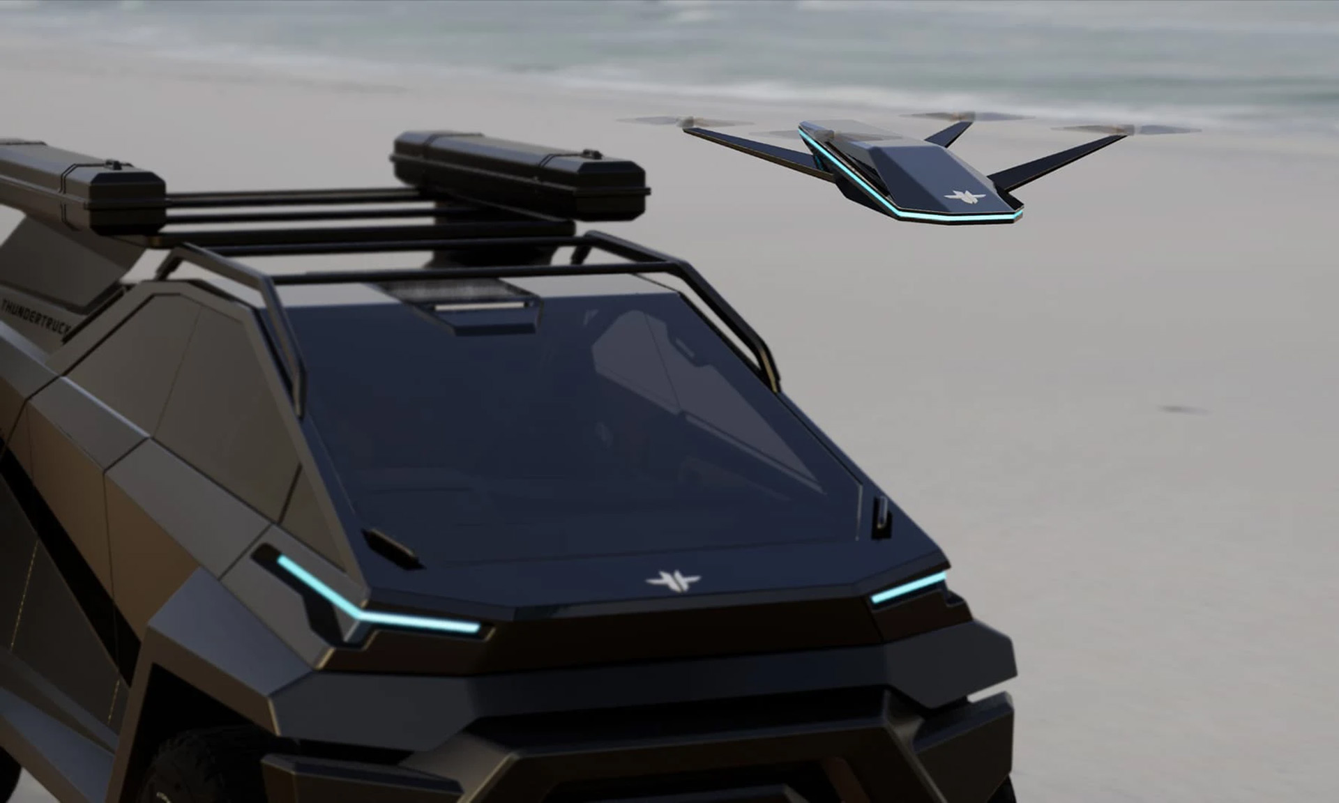 Elektrický offroad Thundertruck přichází ve dvou provedeních s pohonem 4×4 nebo 6×6, kde jsou tedy dvě kola navíc a celkově je model delší lépe vybavený. Už základní verze nabízí extrémní výkone čtyř elektrických motorů se zrychlením 3,6 sekundy na sto kilometrů, pokročilé asistenční systémy, optimalizaci bezpečnosti, šetrné materiály a hlavně modularitu, kdy je možné úložný prostor vzadu ve stylu pick-up rozšířit o praktické moduly.