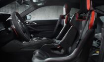 „Dokonalé prostředí na palubě pro soustředěnou radost z jízdy vytváří M Alcantarový volant, antracitové čalounění stropu, karbonové obložení interiéru, nápisy „CSL“ na sedadlech, středové konzole a zadním panelu, stejně jako M specifické displeje. Standardem je také rozšířené kožené čalounění Merino a M bezpečnostní pásy. V zadním prostoru se nacházejí dva odkládací prostory pro přilby,“ dodávají k interiéru vozu, který na stovku zrychlí za 3,7 sekundy.