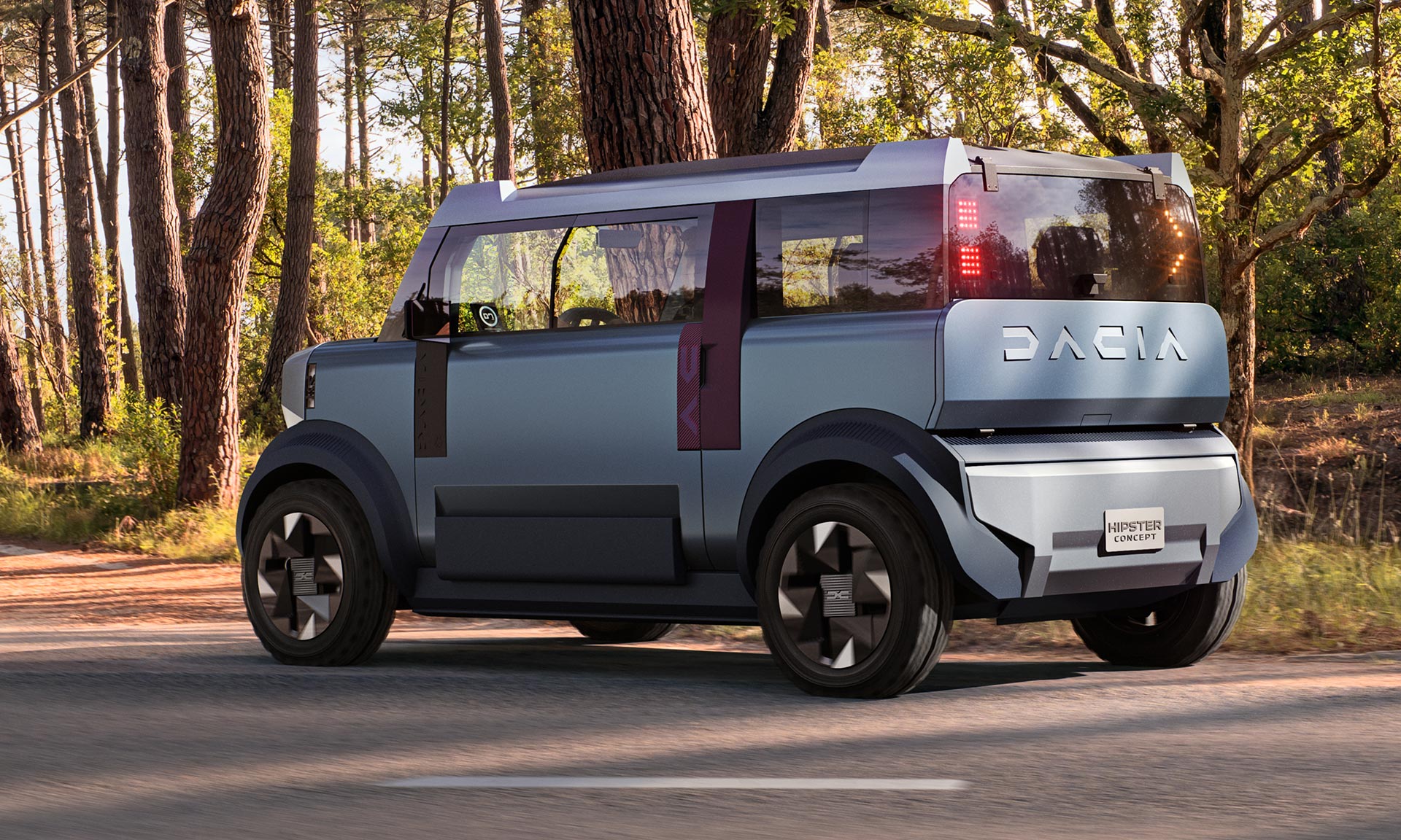 Rumunská automobilka Dacia představila koncept malého elektromobilu Hipster s velmi výrazným designem. Hranaté proporce zaujmou stejně jako uspořádání karosářských dílů nebo přední a zadní světlomety. Vůz má čtyři místa k sezení a pouze jedny dveře na každé straně. Nechybí miniaturní zavazadlový prostor s možností rozšíření o zadní sedadla. Dacia cílí na dostupnost a v případné produkční verzi se může dočkat nízké ceny.