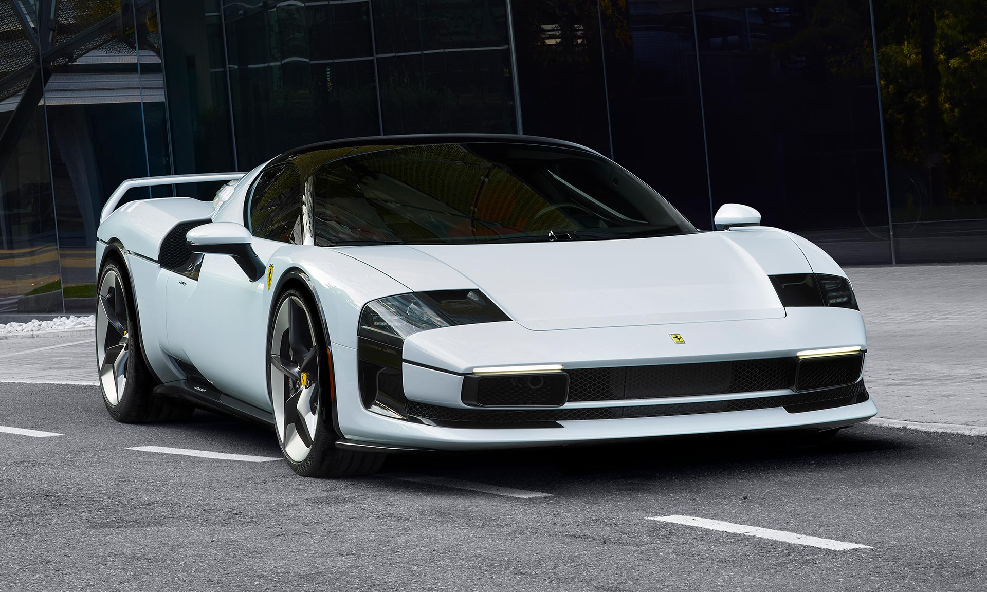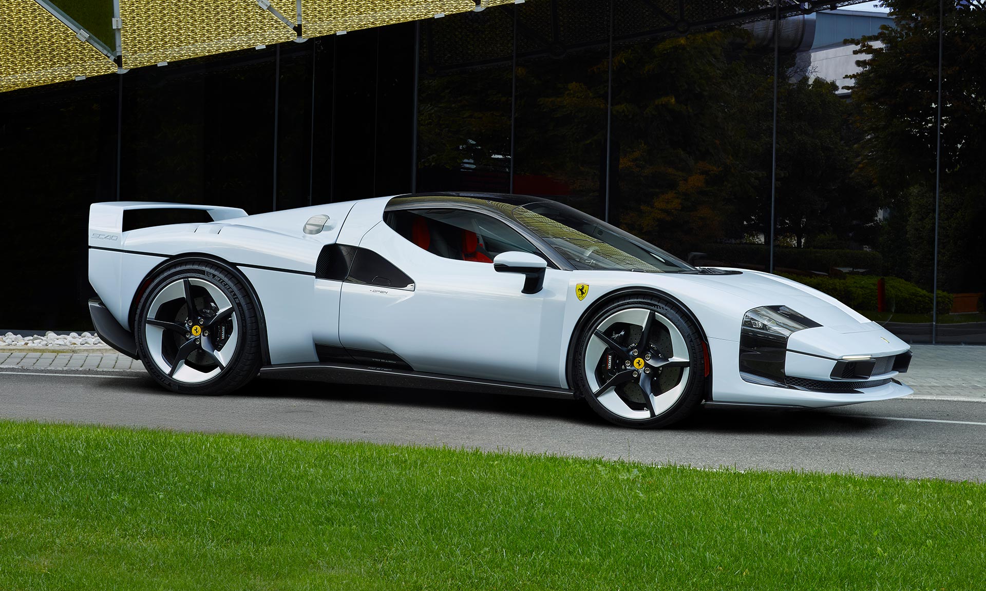 „Styl vozu čerpá inspiraci z průmyslového designu, který se vyznačuje přesnými geometrickými tvary a mohutnými, hranatými objemy. Proporce se vyznačují dlouhou, nízkou přední částí vyváženou krátkým zadním převisem a vysokým, pevným zadním křídlem – lakovaným na míru v barvě SC40 White – které plynule navazuje na boky karoserie. Pevné křídlo se svisle rozprostírá od krytu motoru a plynule s ním splývá, což podtrhuje černá oddělovací linie, která zvýrazňuje černý zadní nárazník. Tato oblast je tvořena otevřenou mřížkou, která odhaluje mechanické a konstrukční komponenty pod ní. Motor V6 je vystaven prostřednictvím charakteristických kouřových žaluzií Lexan, které vizuálně navazují na spodní přívod vzduchu a jsou doplněny menšími žaluziemi vyřezanými do svalnatých zadních křídel v blízkosti podběhů kol. Vytvarovanou zadní část doplňuje centrální výfuk vyrobený aditivní výrobou s koncovkami z titanu a uhlíkových vláken a zadní světla, která jasně odkazují na model 296 GTB, na kterém je vůz založen,“ uvádí automobilka.