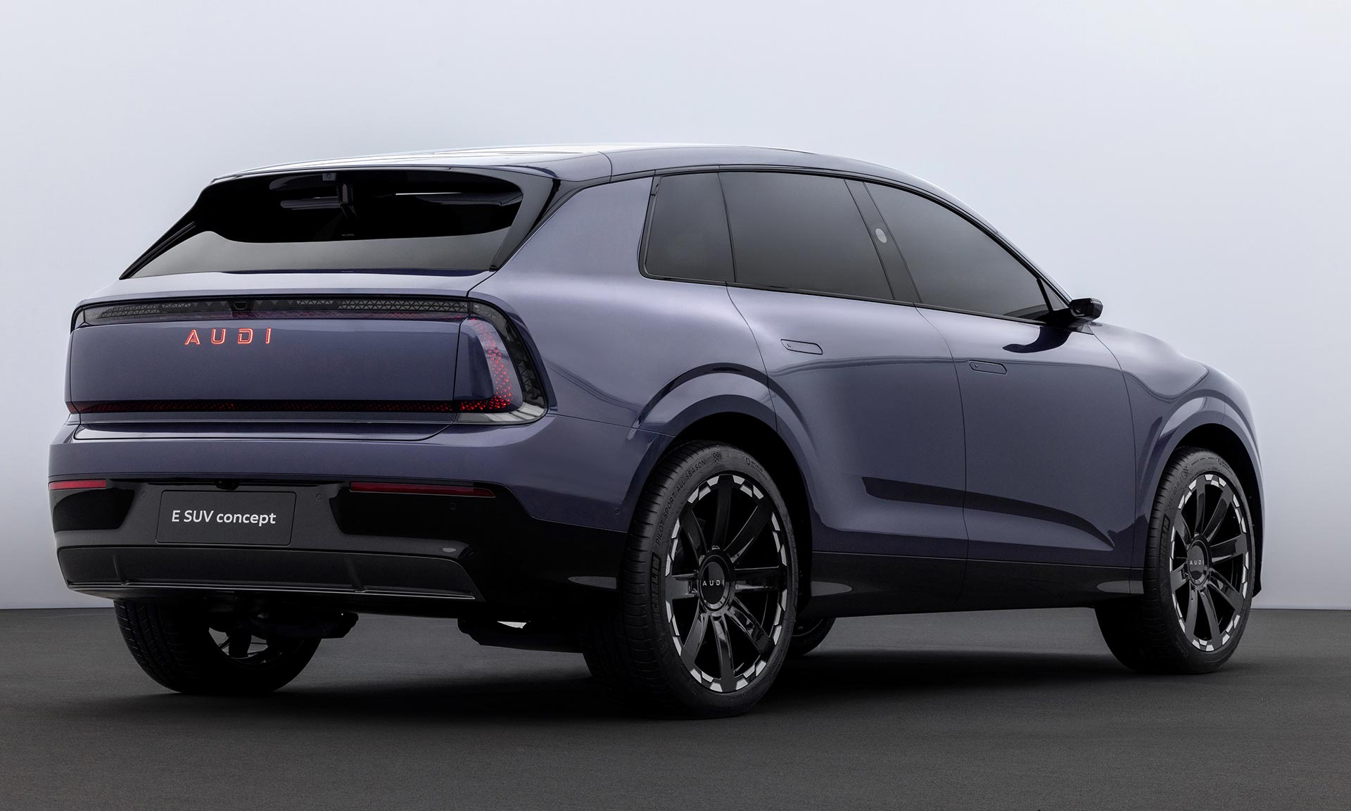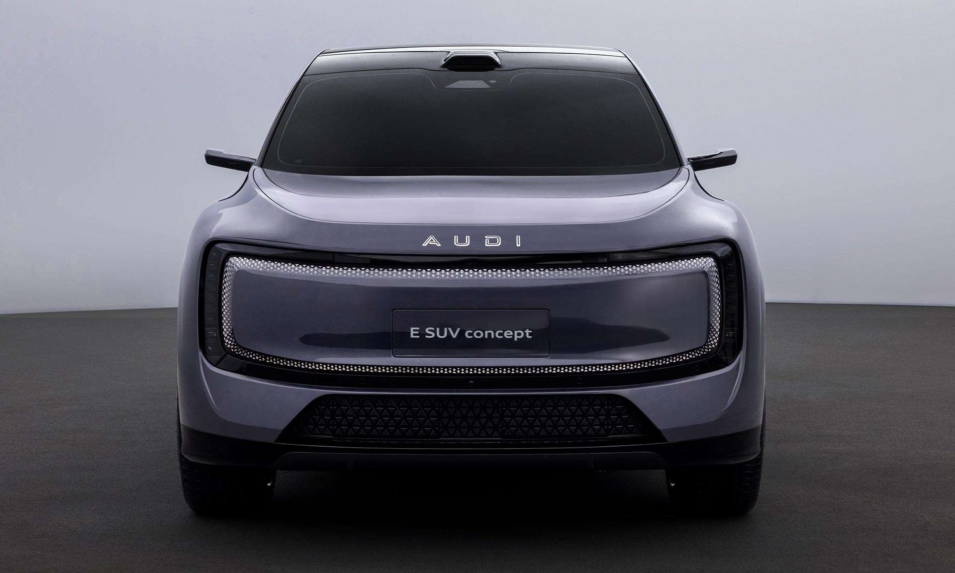 „Koncept E SUV převádí designérský jazyk značky Audi, vyvinutý exkluzivně pro Čínu, do prestižní podoby velkého SUV. Jeho vnější design je monolitický, vyvážený a výrazný. Dokonalé proporce, krátké převisy a precizně komponovaná architektura vozidla dodávají modelu dynamický vzhled; i když stojí na místě, zdá se, jako by se snažil vyrazit vpřed. Díky čistým povrchům, obepínajícím světelným prvkům vpředu i vzadu a mohutně tvarovaným podběhům kol koncept E SUV navazuje na designový jazyk rodiny v portfoliu Audi a zároveň jasně prosazuje svou vlastní identitu. Svislá přední část s digitálními Matrix LED světlomety uspořádanými vertikálně v černém obepínajícím oblouku zdůrazňuje sebevědomou přítomnost SUV. Sériová verze konceptu E SUV bude představena a uvedena na trh v roce 2026 jako druhý model značky Audi,“ dodávají její zástupci.