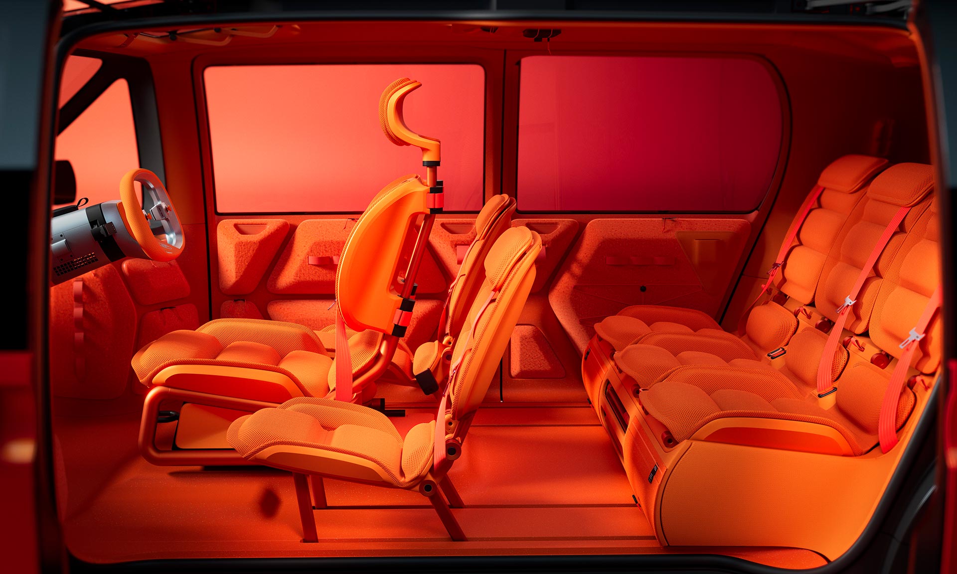 „U Elo se nepřizpůsobuje zákazník autu, ale auto potřebám zákazníka. Ve standardní verzi má 4 místa s centrálně umístěným sedadlem řidiče, jemuž díky čelnímu sklu s výhledem 180° a modernímu důmyslnému rozhraní nabízí nový zážitek z jízdy, zatímco cestující na zadních sedadlech mají k dispozici obrovský prostor. Sedadlo řidiče lze otočit, aby bylo možné si popovídat nebo pracovat, k čemuž napomáhá i speciální podpěra. V případě potřeby lze vysunout další dvě sedadla, aby bylo možné přepravit 6 osob. Interiér se může také proměnit v prostor pro spaní pro dvě osoby, domácí kino, zdroj napájení a mnoho dalších využití. ELO mění svět mobility a stává se katalyzátorem společných chvil strávených s partnerem, rodinou a přáteli,“ dodává k modelu, který se po úpravách mohl dostat do sériové výroby.