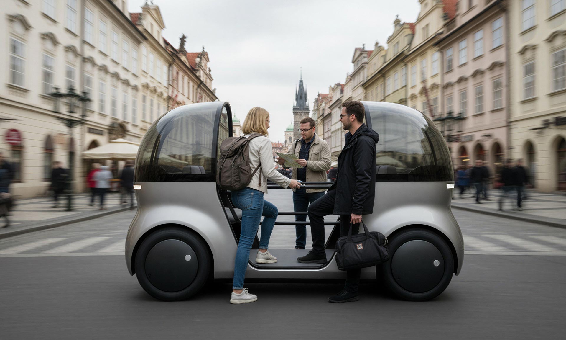 Studenti z Ateliéru průmyslového designu na pražské UMPRUM měli jako semestrální návrh vytvořit design vyhlídkových vozítek pro Prahu. Vzniklo více jak deset nadějných návrhů, při níž studenti využili i generativní umělou inteligenci. Výsledkem jsou malá auta, pojízdná kavárna nebo dokonce tramvaj. Všechny logicky spojuje futuristický design a velká míra prosklení.