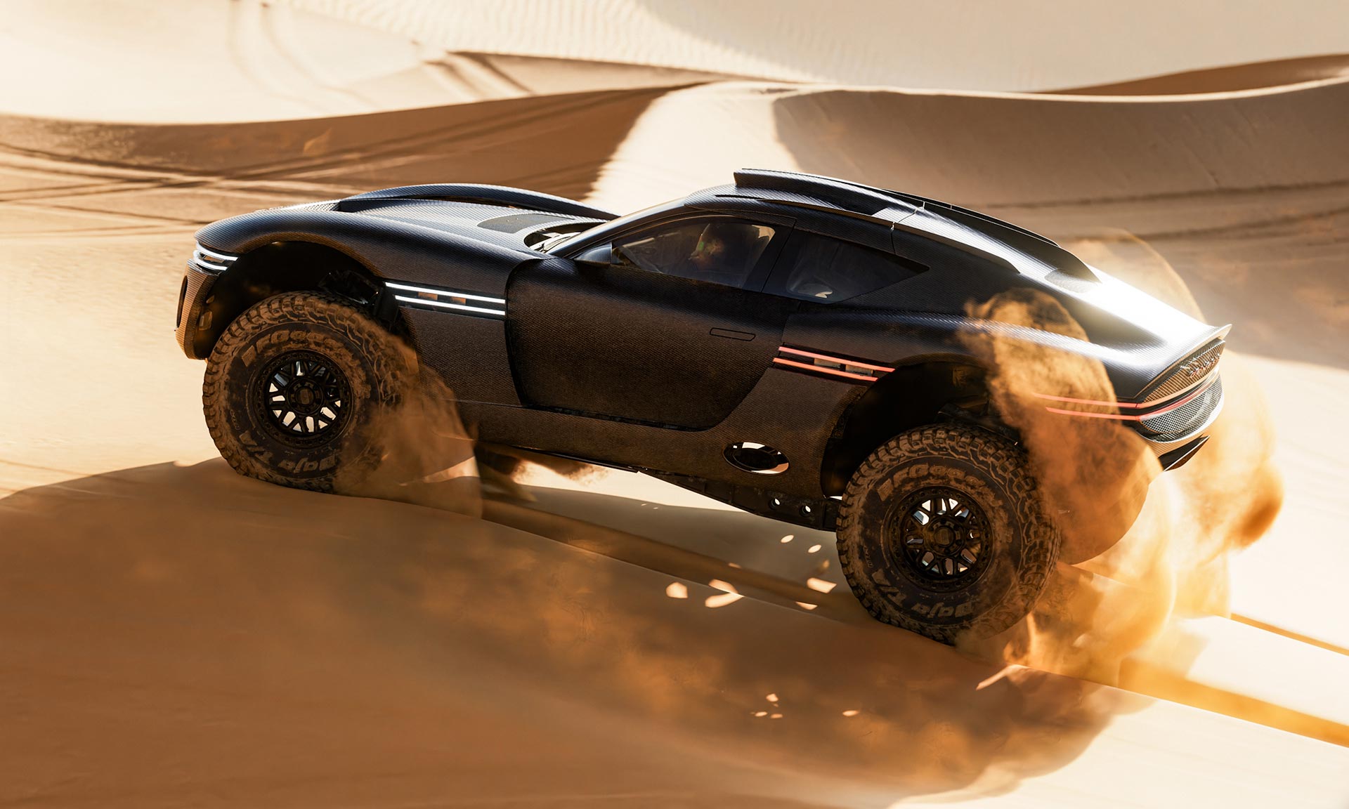 „Přístrojová deska je integrována do volantu, takže řidiči ji mohou pohodlně sledovat, aniž by ztratili přehled o terénu před sebou. Interiér je také vybaven posuvným displejem, který se přepíná mezi režimy pro jednoho řidiče a spolujezdce – do středové polohy pro řidiče nebo posunutý k spolujezdci pro navigaci spolujezdce. Bezpečnostní madla jsou výraznými dotykovými body, které zajišťují stabilitu při prudkých pohybech, zatímco neomezená nastavitelnost displeje umožňuje řidičům a spolujezdcům soustředit se na navigaci v terénu. Pokročilé komunikační systémy doplňují výbavu a zajišťují hladkou koordinaci i v nejodlehlejších prostředích,“ dodávají její zástupci bez podrobností o výkonu či plánů na výrobu.