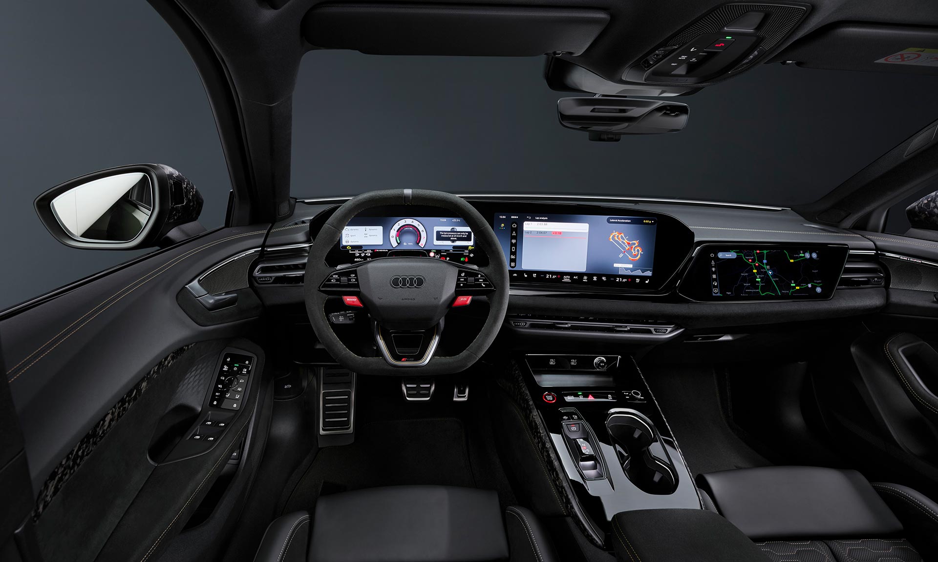 „Interiér zcela nového modelu RS 5 nabízí nekompromisní sportovní charakter, který může zaručit pouze model Audi Sport RS. V přední části poskytují sportovní sedadla plus s prošíváním ve tvaru voštiny nejen výjimečnou boční oporu, ale také vynikající pohodlí při delších jízdách. Elektrické nastavení a standardní masážní funkce zajišťují spokojenost řidiče a spolujezdce při každé cestě. Zákazníci si mohou vybrat z pěti různých designů interiéru, z nichž každý se liší jedinečnými materiály a barevnými schématy. Všechny mají společnou maximální diferenciace RS, včetně barevně sladěných bezpečnostních pásů po celé délce a log RS na všech rohožích, které ladí s barvou interiéru. Jako doplněk každého designu je stropní obložení ve všech konfiguracích jednotně provedeno v černé barvě,“ dodává k interiéru vozu s omezenou rychlostí na 285 kilometrů za hodinu. Na stovku zrychlí za 3,6 sekundy.
