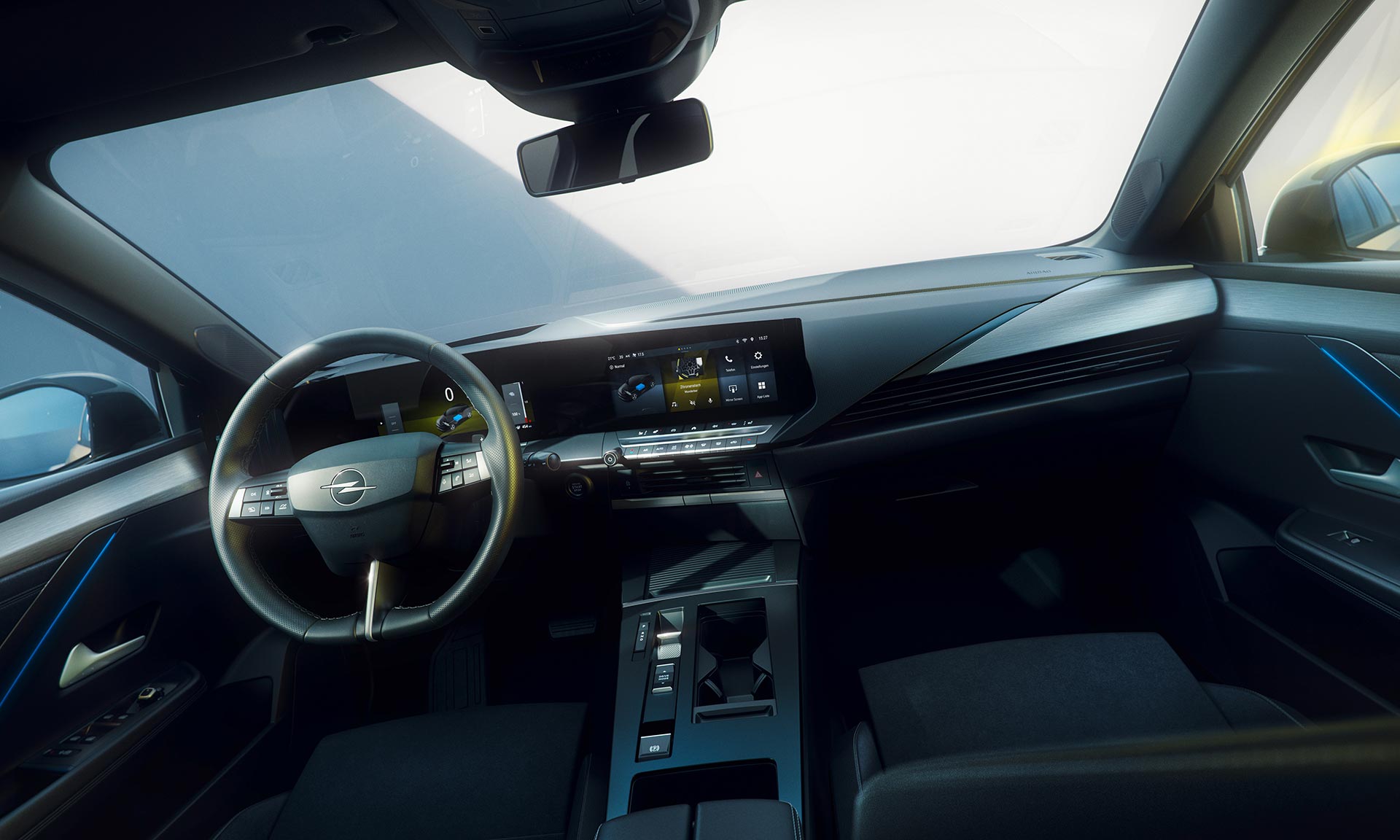 „Inženýři Astry také dále optimalizovali interiér. Opatření sahají od designu kokpitu a displeje až po jízdní komfort s vylepšeným pocitem pohodlí. Důvodem je to, že takzvané Intelli-Seats jsou standardem ve všech modelových variantách. Vyznačují se speciálním vybráním uprostřed sedadla, které snižuje tlak na kostrč. Patentovaná ergonomická funkce Intelli-Seat tak zajišťuje uvolněný jízdní komfort i při dlouhých cestách. Od výbavy GS má sedadlo řidiče také certifikaci AGR a v volitelné verzi ReNewKnit jsou certifikací AGR opatřena jak sedadla řidiče, tak i spolujezdce. Zároveň byly kokpit a uživatelská rozhraní pro multimediální infotainment a další funkce ještě více zjednodušeny, zpřehledněny a zintuitivněny. Nové vizualizace a grafika na obrazovkách dodávají interiéru modernější vzhled. Z praktického hlediska je nyní řidič může číst ještě snadněji než dříve. V souladu s přístupem Greenovation společnosti Opel jsou v interiéru modelu Astra použity četné materiály a povrchové struktury šetřící zdroje: volant je zcela potažen veganskými materiály a volitelné potahy sedadel jsou vyrobeny z materiálu ReNewKnit, speciálního monomateriálu, který nabízí vzhled vysoce kvalitní semišové kůže,“ dodává k interiéru.