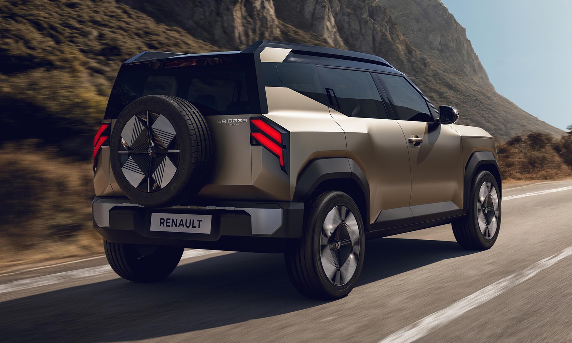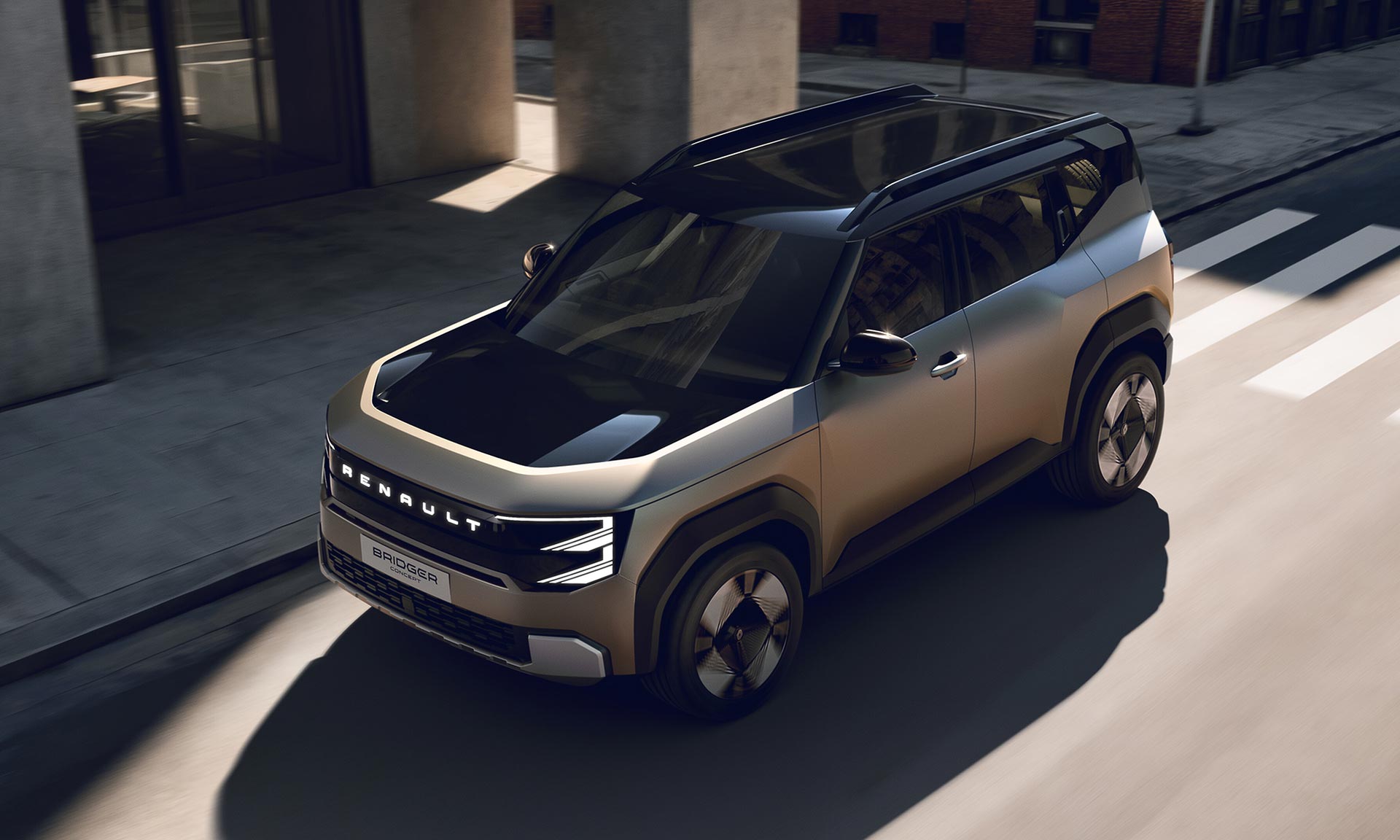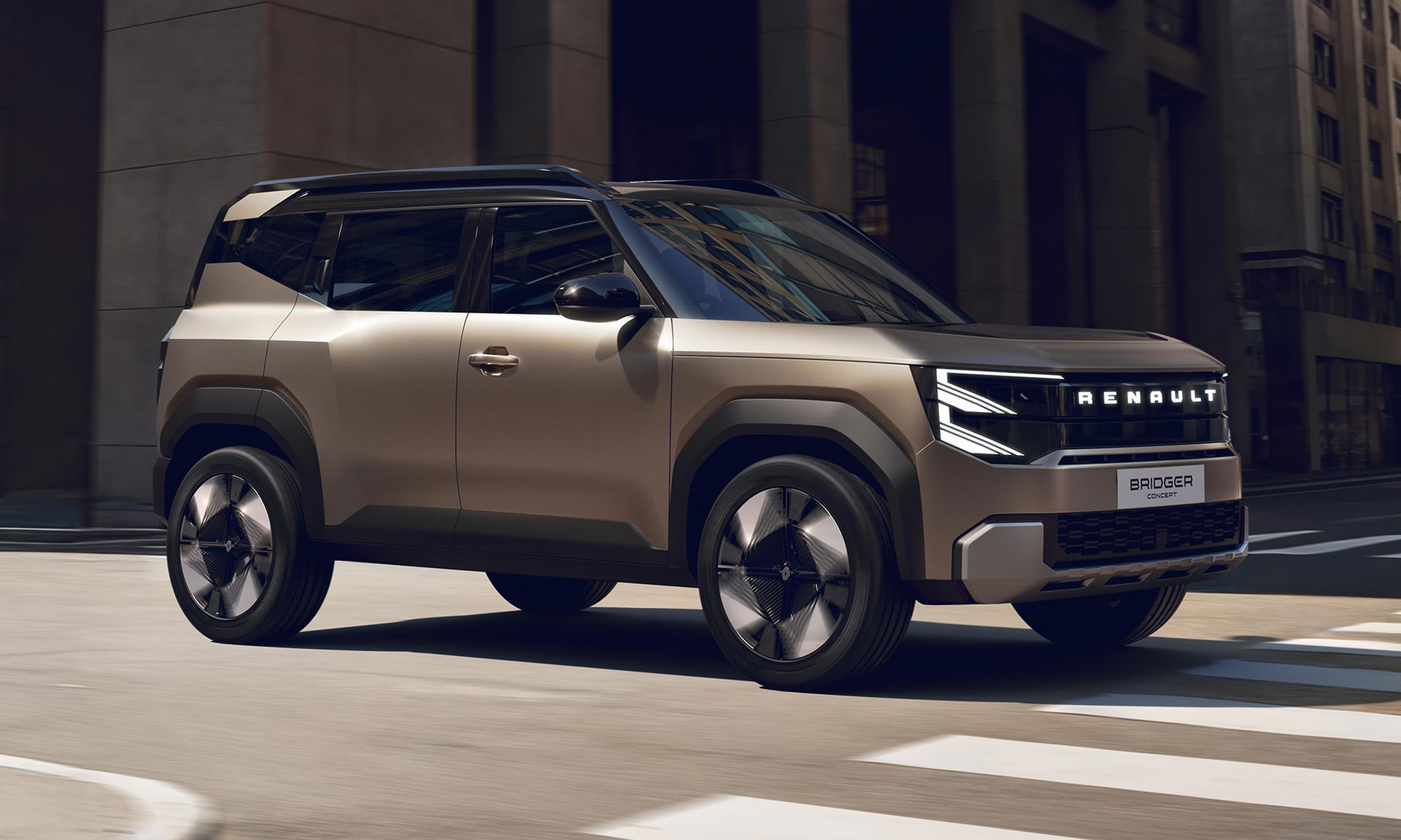 Do roku 2030 chce francouzská automobilka Renault uvést na trh 12 nových modelů. Jedním z nich, který má přijít do konce roku 2027, bude Renault Bridger. Malé SUV s délkou pod čtyři metry zaujme robustním designem a offroadovým nádechem, i když cílí především na cesty po městě a mimo něj. Výrazná je tmavá plocha na kapotě, absence klasické kliky u dveří i přiznaná náhradní pneumatika na zadních dveřích.