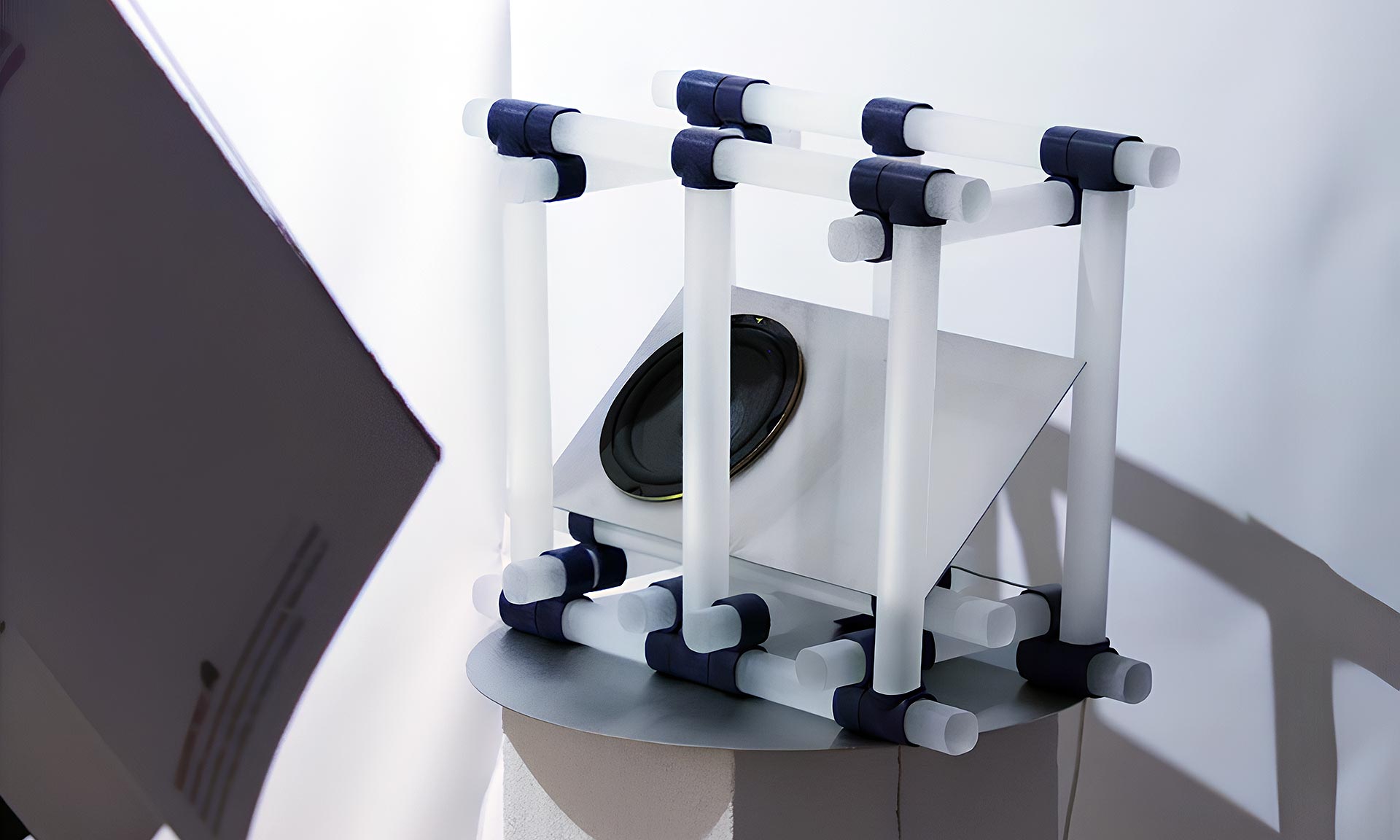 „Projekt vychází z londýnské UK grime scény, její syrové energie a přirozeného urbánního prostředí. Inspiraci nachází v brutalistní architektuře, tvrdých rytmech i surové atmosféře metropole. Tyto vlivy se promítají nejen do vizuálního jazyka objektu, ale i do jeho konceptuálního rámce. Hudba je zde chápána jako kompozice analogových a syntetických nástrojů, které se prolínají v dynamické zvukové struktuře. Reproduktor se stává médiem–nástrojem, jenž tuto kompozici materializuje v prostoru. Přesto však zůstává pouhým prostředníkem — nikdy nemůže plně nahradit fyzickou a emocionální intenzitu živého vystoupení, může se jí pouze přiblížit,“ uvádí designér Marek Kounovský.