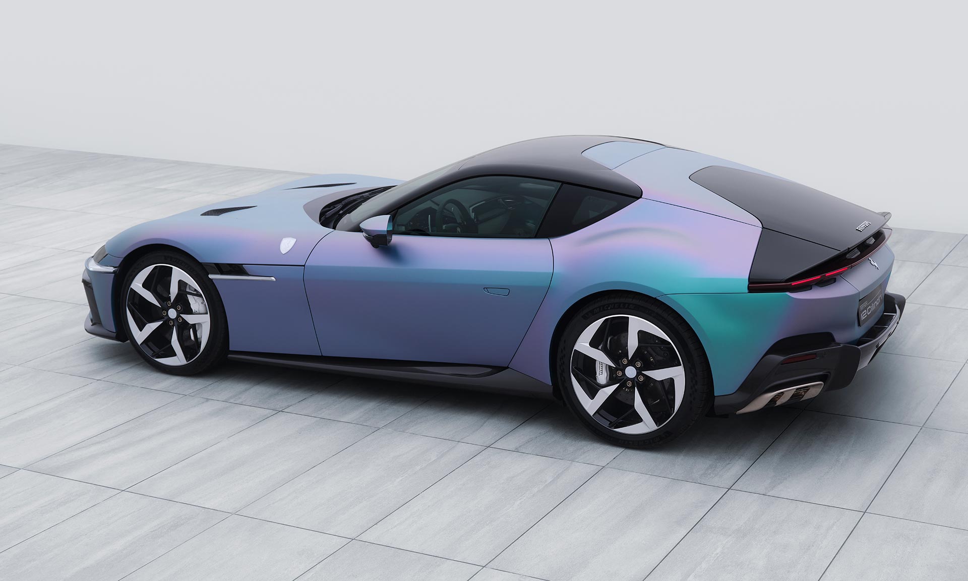 Před téměř dvěma lety představila italská automobilka Ferrari sportovní vůz 12Cilindri, který nyní upravili na zakázku jako Tailor Made. Vznikl tak jedinečný vůz, který je snadno rozpoznatelný už z dálky svou měnící se barevností od zelené do fialové. Barevnost se neprojevuje jen v exteriéru, ale zasahuje také do interiéru, kde je nejvýraznější na dveřích. Speciální je i potisk kapoty nebo látka na sedadlech.