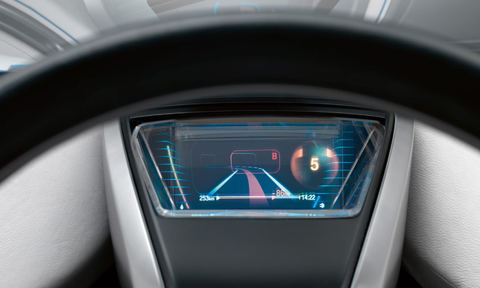 Každý agregát lze deaktivovat, tím pádem je vůz schopen i čistě elektronického provozu, při kterém dosahuje dojezdu 50 kilometrů. Celkový dojezd za provozu všech zdrojů pohonu je 700 kilometrů. Elektrická energie se shromažďuje ve 98 buňkách lithium – polymerových bateriích, uložených ve středovém tunelu. Na jedno nabití je vůz schopen přibližně 50 kilometrů jízdy.