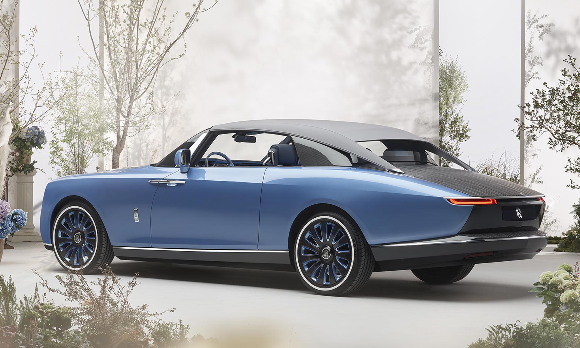 Největší zvláštností je však zavazadlový prostor, který nabízí kompletní výbavu pro stolování kdekoliv v přírodě. Mimo slunečníku tu jsou i dvě židličky a kompletní vybavení pro stolování. Vše je laděno do klientovy oblíbené modré barvy a to včetně interiéru. Pod kapotou pak najdeme tradiční dvanáctiválec s objemem 6,75 litru, který používá model Phantom. Vůz měl stát okolo 28 milionů dolarů, tedy asi 585 milionů českých korun.