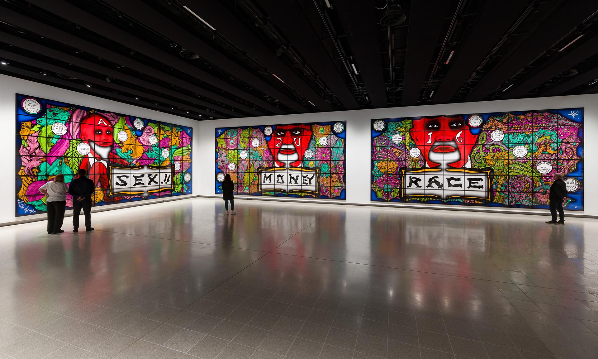 „Od novinových titulků po dopravní značky, pohlednice a zaslechnuté rozhovory, umělci mísí obrazy a texty z každodenního života, aby vytvořili živé obrazy, které podněcují dialog o dnešních společenských normách a tabu. Výsledné umění je často provokativní a náročné ve svém odmítání předávat jednoduché poselství o sexu, náboženství, třídě, nacionalismu, korupci a smrti,“ dodávají s tím, že nejvýraznější jsou vystavená díla z roku 2011 a poté nová z letoška.