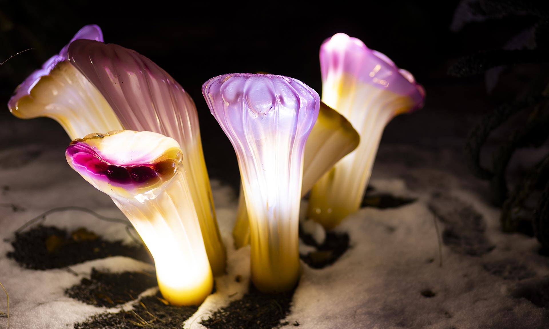 „Zimní scenérii opět rozzáří pestrobarevné květy i sklenění zástupci zvířecí říše, jejichž tvary vynikají v kontrastu s mrazivou krajinou. Mezi letošními novinkami se objeví skleněné podoby jarních květů, jako jsou modřence, tulipány nebo narcisy. V tematické části Archa Krystalika vznikne také symbolická expozice ohrožených druhů rostlin – například koniklec, hvězdnice či hlaváček. Velkou pozornost jistě upoutá vysoká modrá květina Azura či nově vytvořené slunečnice a rákosí. Nebude ale chybět ani jedna z dominant minulého ročníku – kompozice vytvořená z unikátního uranového skla, které se rozzáří pod paprsky UV světla,“ uvádí zástupci Botanické zahrady Praha její zástupci.