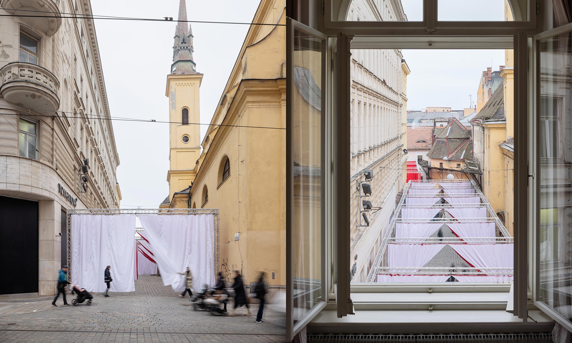 „Na mapě brněnských Vánoc se díky tomu letos poprvé aktivně objeví Římské náměstí. Během roku se zde setkávají lidé, kteří stojí na okraji společnosti. Právě proto se pro nás hlavním motivem tohoto prostoru stalo téma bariér a jejich překonávání. Za architektonickým řešením stojí architekti z Peer Collective. Římské náměstí s pomocí velkoformátových opon symbolicky rozdělili na sérii bariér, které musí návštěvník překonat, aby se dostal do centra dění. Nejde o překážku, ale především o inspiraci k vlastní proměně. Malý osobní rituál na cestě za lepším já. A právě ten je vrcholem celého našeho programu,“ dodávají.