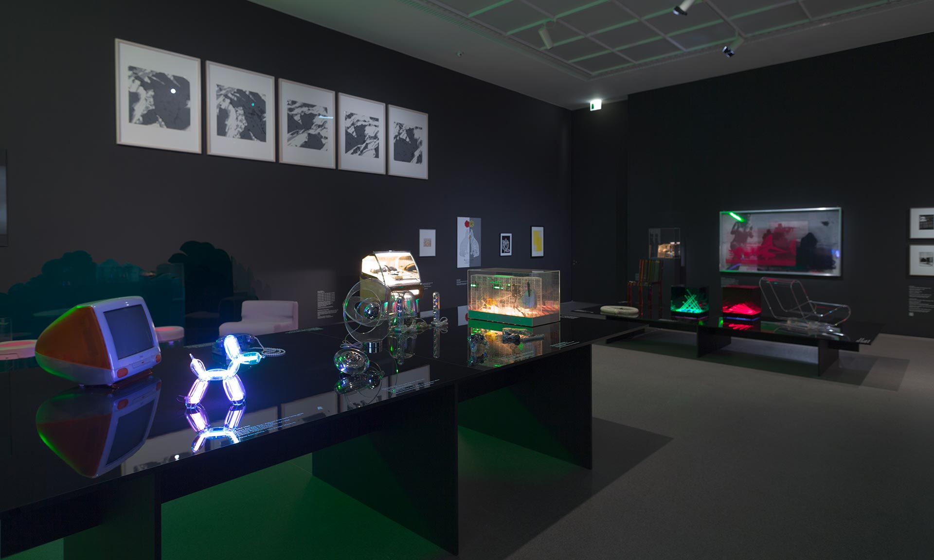 Mezi zajímavými exponáty najdeme například počítač iMac od Apple s průhledným plastovým tělem, křeslo Low Chair Plastic od Maartena Van Severena, svítidlo v chráničce Boalum od Aldo Ballo a značky Artemide nebo svítidlo Sattelite z roku 1965 od Yonel Lebovici. Nechybí ani nejnovější exponáty jako svítící pes od Lexon a designéra Jeffa Koonse nebo dálkový ovladač pro Nintendo Switch.