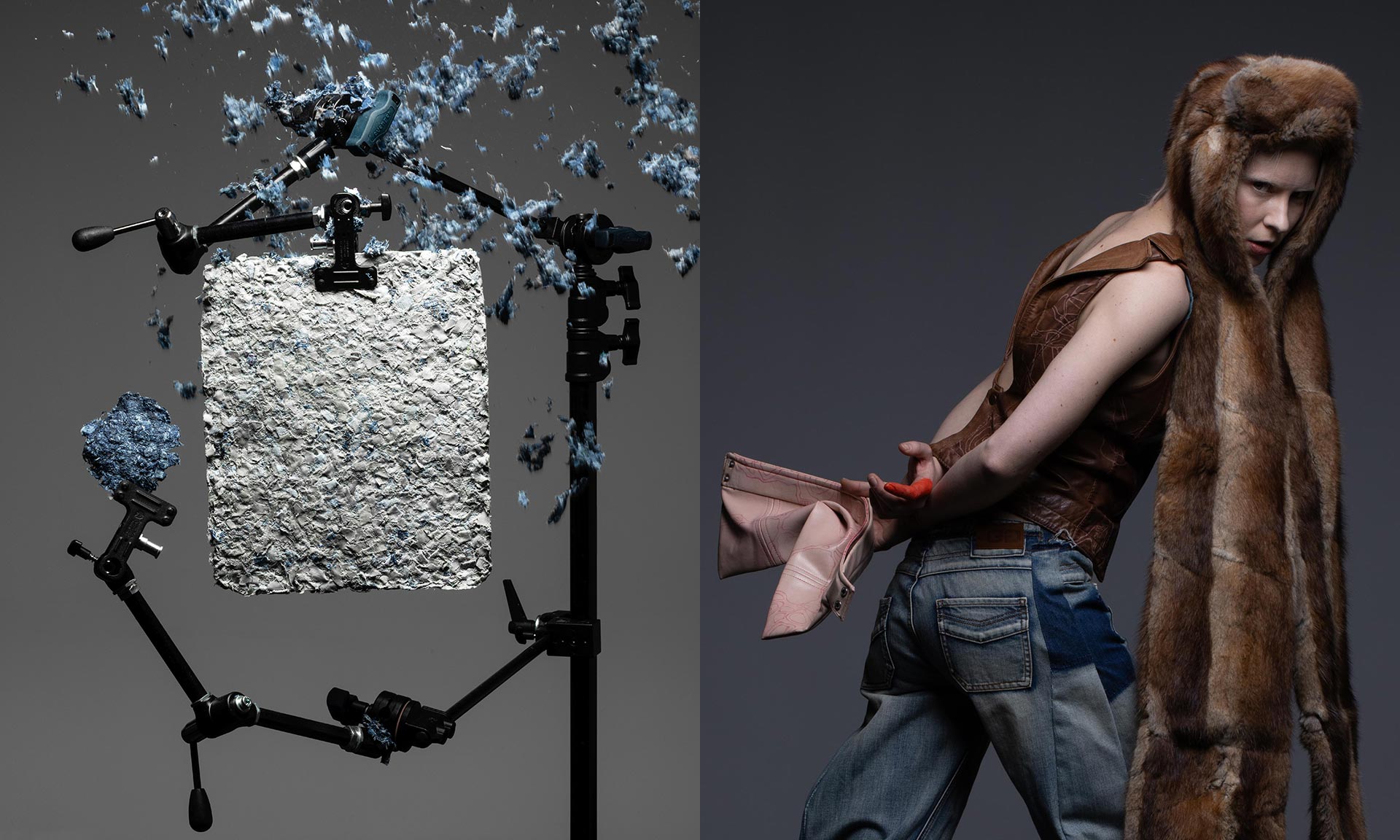„Expozice prezentovaná na Milano Design Week překračuje oborové hranice a odráží rozmanité perspektivy zapojených ateliérů. Nepředstavuje okamžité celosvětové řešení krize, ale snaží se v lokálním kontextu o přístup, který pomůže místním najít možné cesty ke zmírnění dopadů problému. Studující Ateliéru produktového designu se zabývají textilem jako surovinou a skrze inovativní technologické postupy přetvářejí odpad na zcela nové materiály a užitné předměty. Ateliér designu oděvu a obuvi povyšuje vyřazené šatstvo na úroveň upcyklované vysoké módy. Tyto hmatatelné výstupy rámuje syrový audiovizuální materiál Ateliéru volné umění IV zachycující kontrast mezi čistou přírodou regionu a drsným prostředím průmyslové třídírny. Funkční dopravníkový pás, jenž se stává centrálním bodem instalace Wasted Waste, převáží bez ustání haldy oblečení. Mravenčí úsilí autorů expozice, kteří pás performativně dokola obsluhují, evokuje náročnou práci, která lidstvo čeká, pokud chce zachránit planetu,“ dodávají.