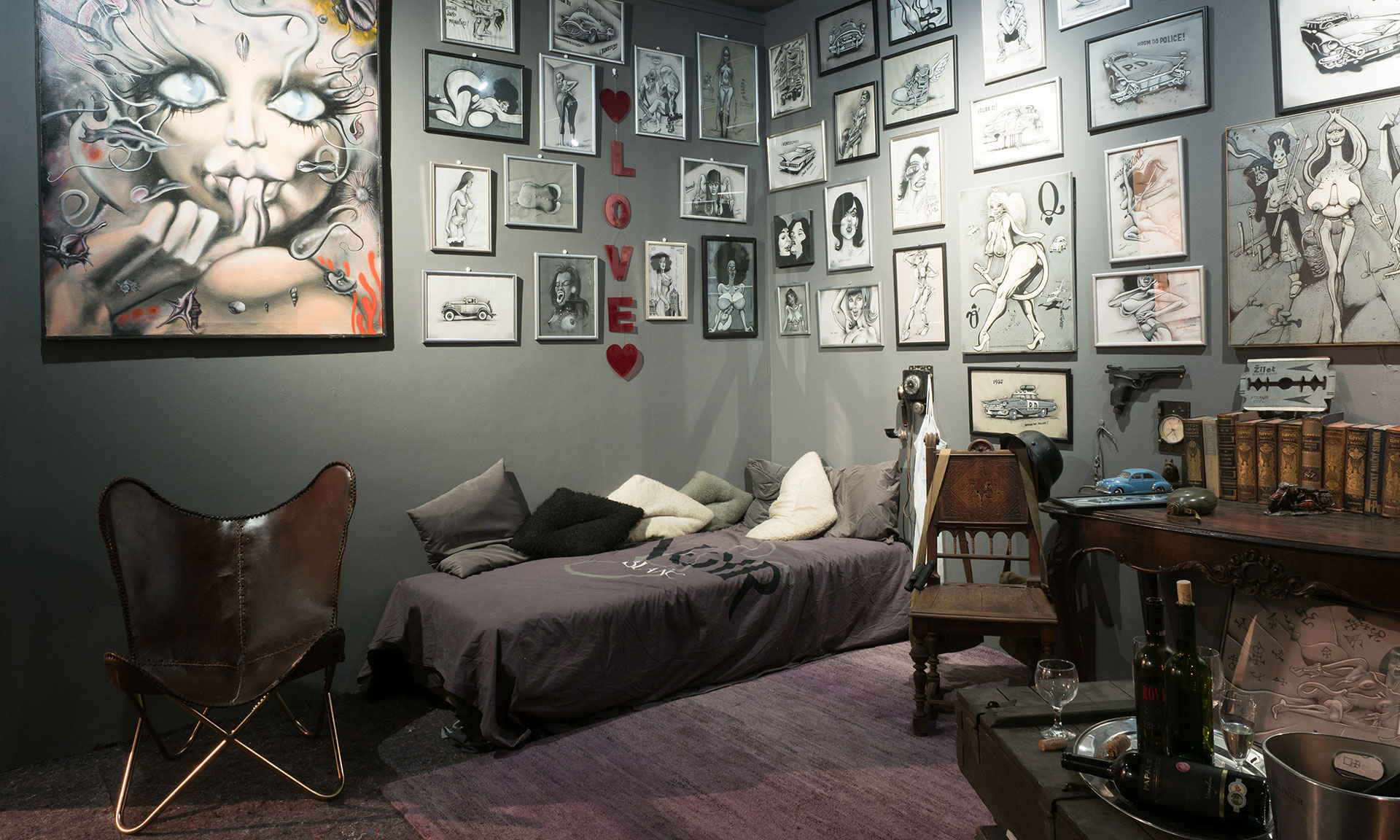 „V galerii je na půl roku vystaven soubor několika set originálních děl včetně těch, která zatím nebyla nikde prezentována. Výstava je uspořádána jako časový i tematický průřez tvorbou. V expozici jsou k vidění kresby z 50. let i některé z posledních obrazů namalovaných okolo roku 2005. Zastoupena jsou díla od komiksu přes ukázky práce pro film až po volnou tvorbu, zahrnující olejomalbu a volné umění. Vše doplňují dobové tiskoviny, 3D objekty, fotografie a videa,“ uvádí zástupci galerie.