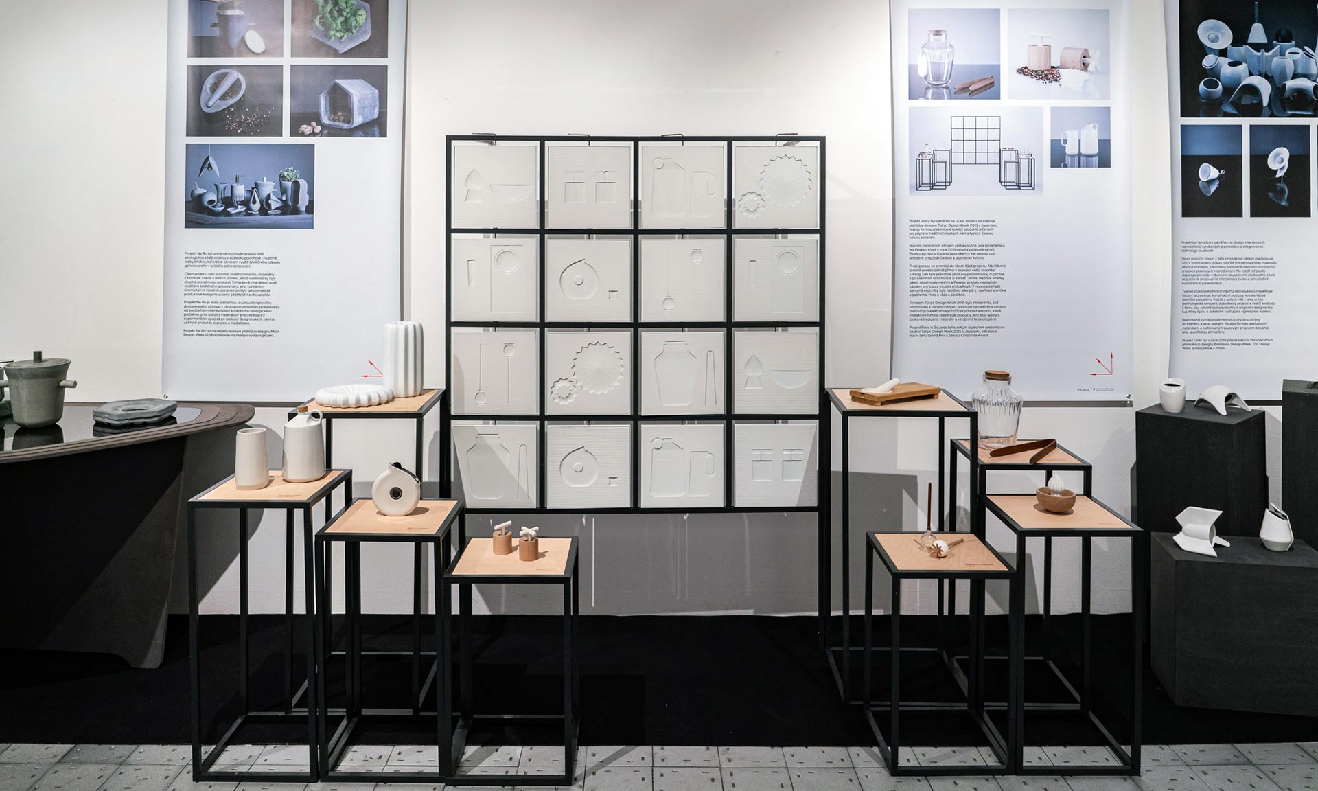 „Kromě významných aktivit v České republice, mají návštěvníci příležitost si prohlédnout zahraniční projekty z posledních let. Uvidí hravou prezentaci Pairs in Squares, s kterou ateliér v roce 2015 získal hlavní cenu Grand Prix a Korporátní cenu v soutěži Asia Awards v rámci světové akce Tokyo Design Week. Dále pak instalaci Cucej z holandského design weeku (2016), která se věnovala českému lázeňství a léčebným lázeňským procesům. Projekt Ne-Ro, za který byl ateliér na největší světové přehlídce designu Milan Design Week 2018 odbornou komisí nominován mezi nejlepší výstavní expozice, reagoval na téma ekologické zátěže. Využitím odpadní břidličné frakce a 3D tisku vznikla kolekce produktů do domácností zaměřených na pěstitelství a chovatelství,“ doplňuje Šárka Michalíková z Krajské galerie výtvarného umění ve Zlíně.