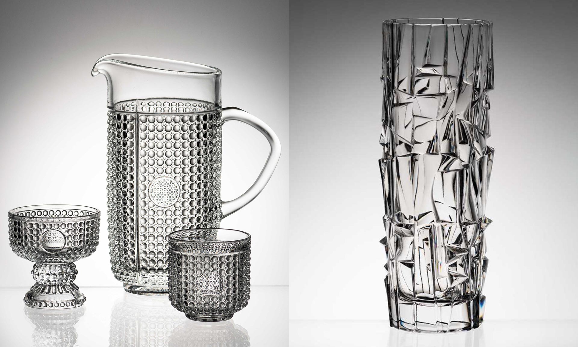 „Dominantním výrobcem dutého užitkového lisovaného skla mezi lety 1948–1989 byl teplický Sklounion, pod nějž spadalo několik skláren po celé zemi. Drobné, ale komerčně velmi úspěšné skleněné zboží, zvané souhrnně krystalerie, dodávaly do celého světa Jablonecké sklárny v dnešní Desné, přes monopolní podnik zahraničního obchodu Skloexport. Projekt jabloneckého muzea představuje obě tyto výrobní polohy československého lisovaného skla,“ dodává.