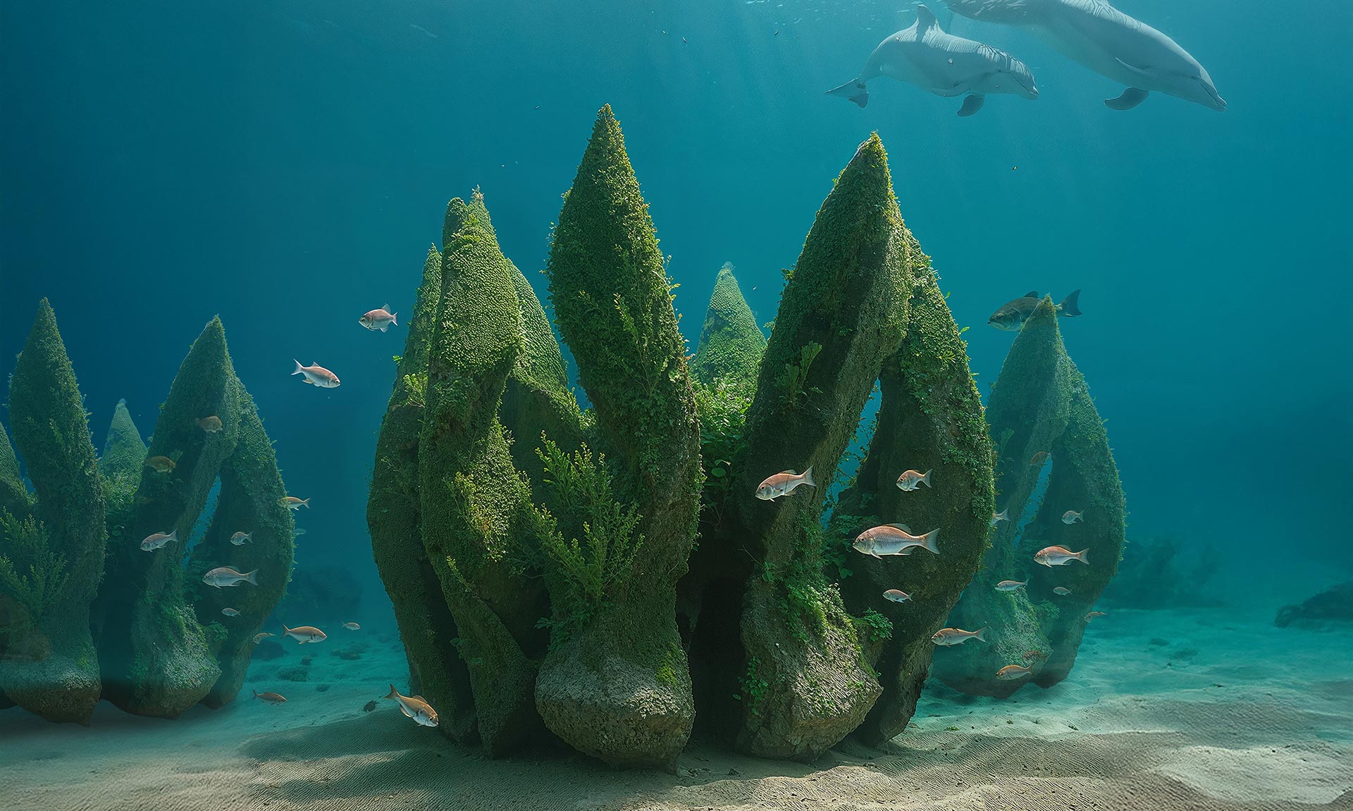 „Nereid od společností ZHA a D-Shape, který se zaměřuje konkrétně na regeneraci potravních zdrojů, byl vyvinut tak, aby podporoval růst fytoplanktonu a filtrujících měkkýšů, kteří jsou základem potravního řetězce mořského ekosystému. Díky použití materiálů s neutrálním pH v nízkouhlíkové betonové pastě, která je bezpečná pro mořské prostředí, poskytuje pokročilá technologie 3D tisku společnosti D-Shape biomimetické formy, které napodobují přirozenou strukturu a poréznost útesů a lze je použít v různých pobřežních oblastech. Návrh, optimalizovaný pro použití v mořském prostředí, napodobuje geometrii bentických systémů, jako jsou kelpové lesy, a imituje tak přirozenou komplexnost,“ dodávají designéři ze Zaha Hadid Architects.