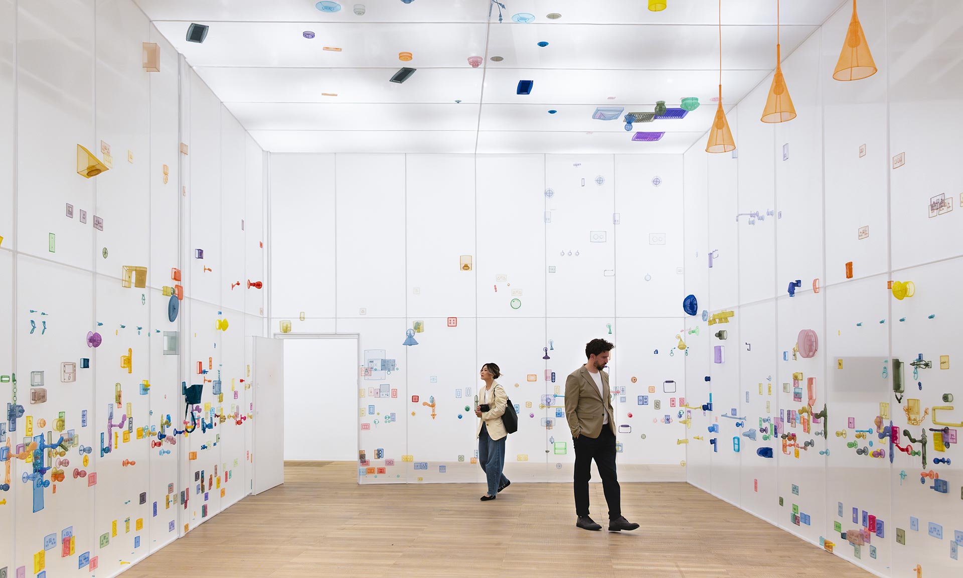 Expozice nabízí i další výrazná díla jako dům vytvoření náročnou technikou otírání povrchu grafitem a následné přenášení barevnými tužkami. Vystavena je i tapeta vytvořená ze 2 000 malých portrétních fotografií nebo místnost z bílých stěn, kde jsou vyšité nebo našité kliky, vypínače či různá elektronika. Jeho díla jsou hravá a lákají ke zkoumání nebo rozvíjení další představivosti.