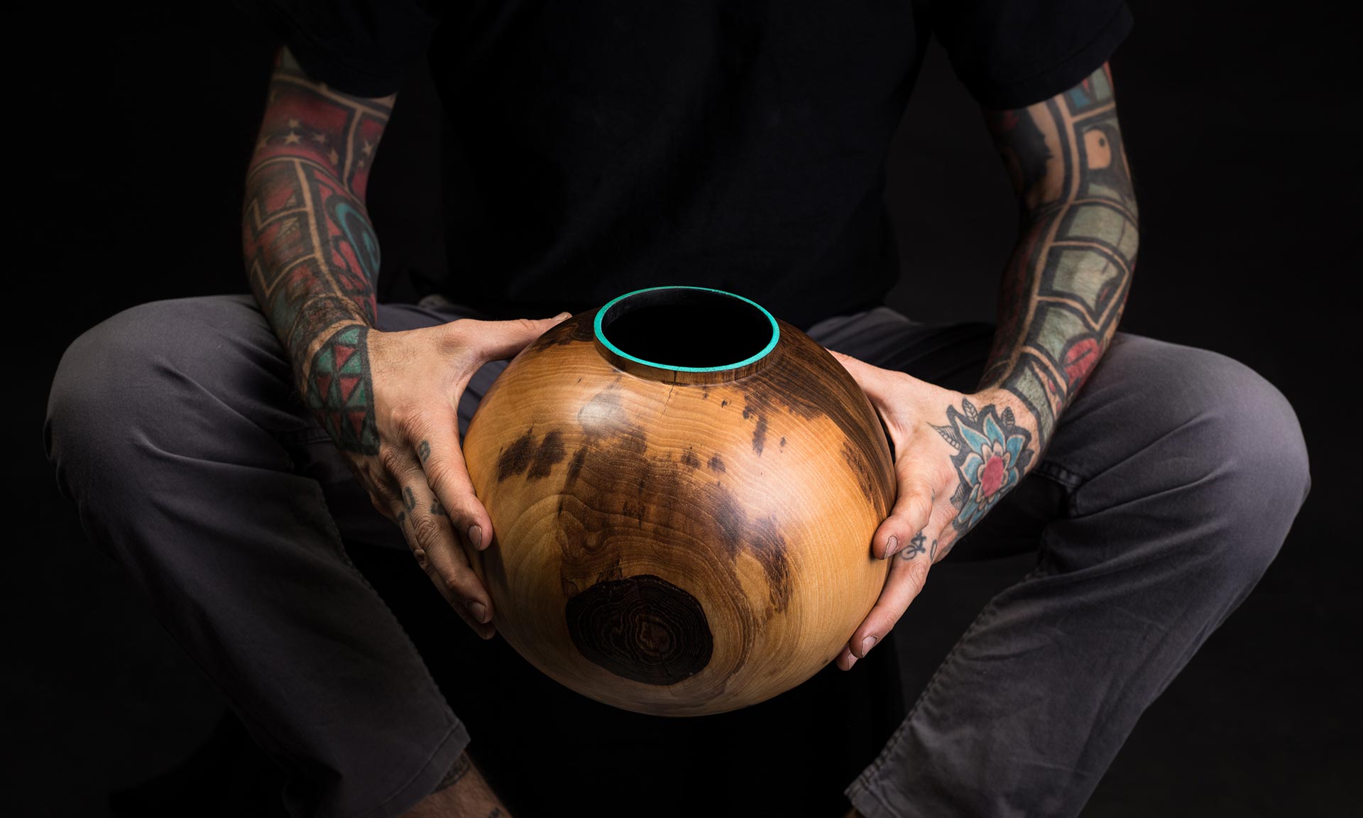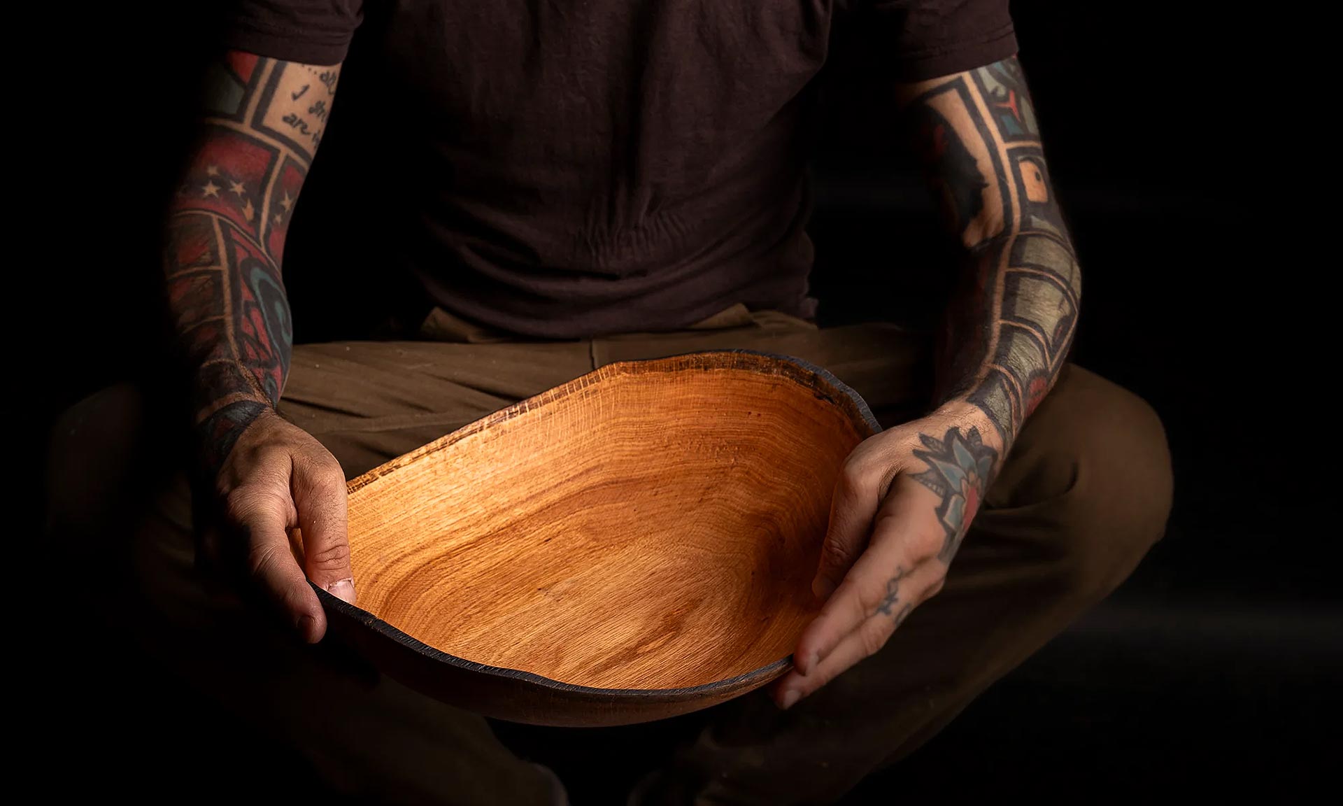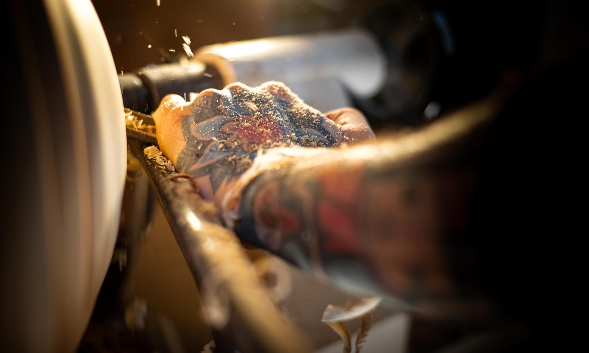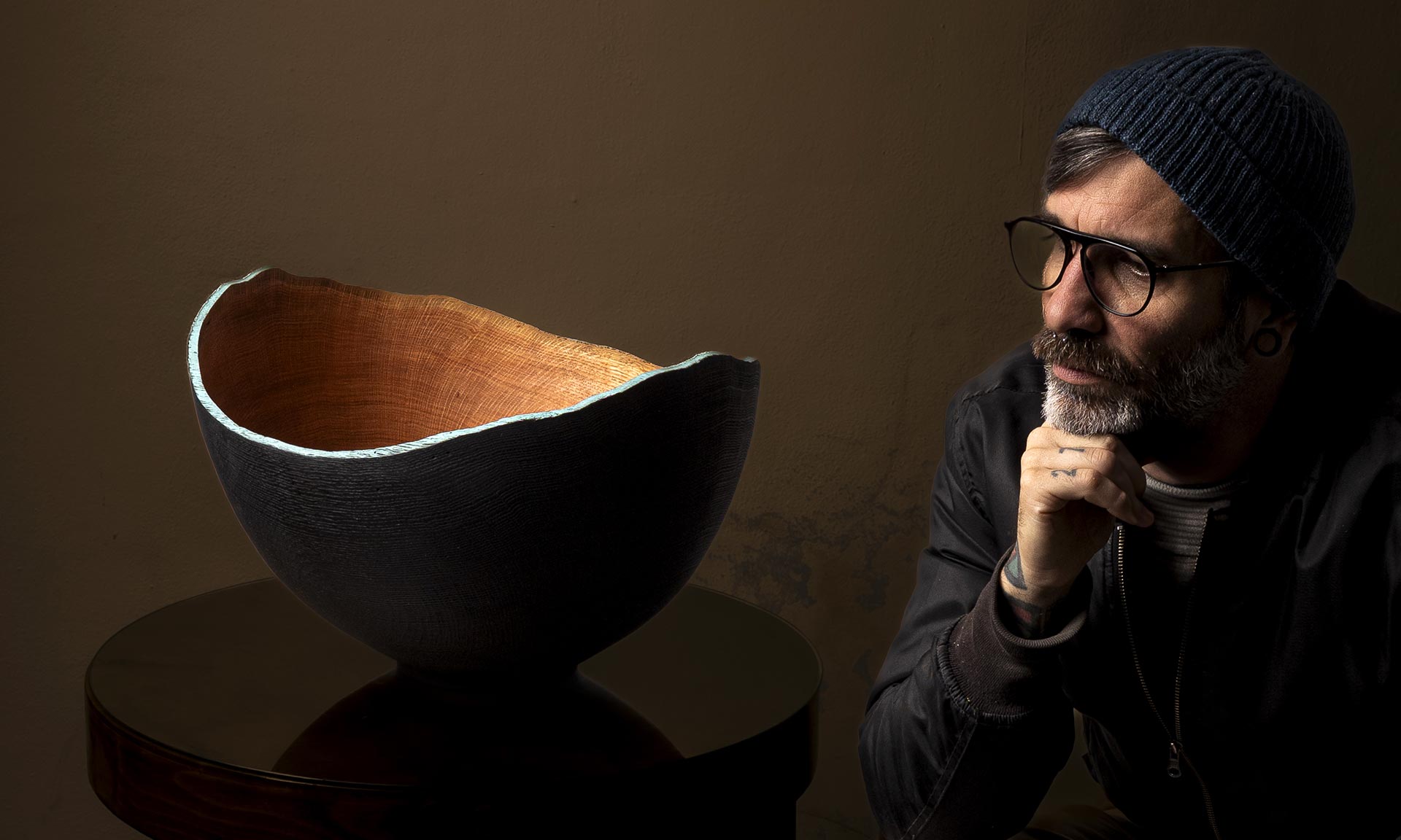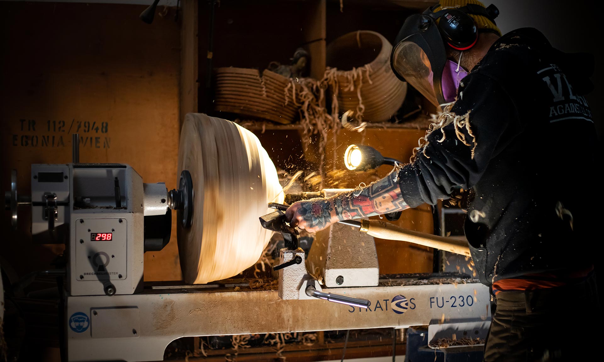 „Poprvé jsem si soustružení vyzkoušel během prázdnin u prarodičů. Na jejich zahradě je dílna, ve které kdysi pracoval můj pradědeček, houslař. Vždycky mě přitahovala myšlenka vdechnout nový život věcem, které jiní považují za nepotřebné nebo bezcenné. Dřevo – obzvlášť vyřazené kusy – má obrovský potenciál. Každý zbytek nebo poškozený špalek má svůj příběh a může se proměnit v něco jedinečného. Právě to mě k soustružení přivedlo a stále mě to každý den inspiruje. Jednou z věcí, které na soustružení opravdu miluju, je práce s čerstvým (tzv. zeleným) dřevem. Jak postupně schne, přirozeně se smršťuje a kroutí – a celý tento proces mi připadá fascinující,“ říká Lubomír Kuča.