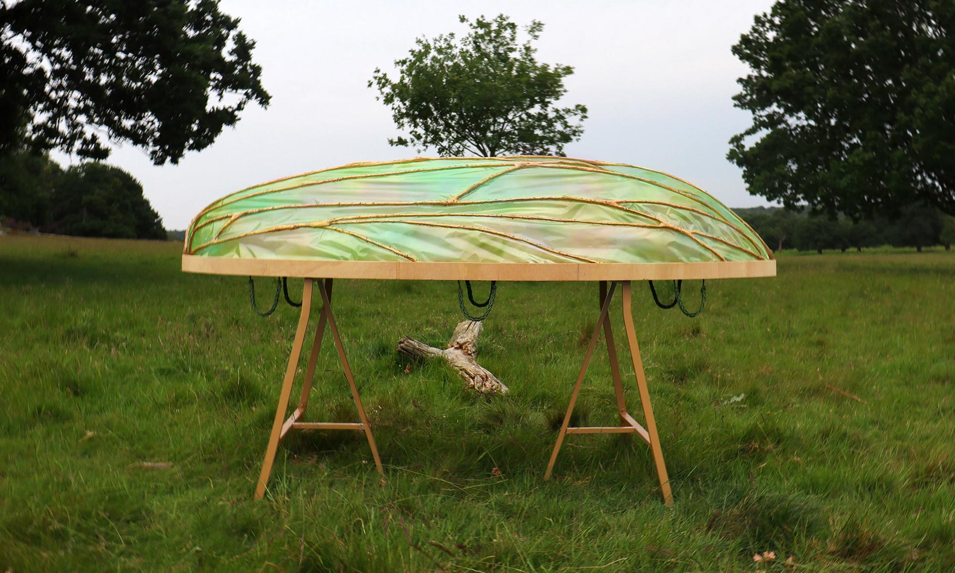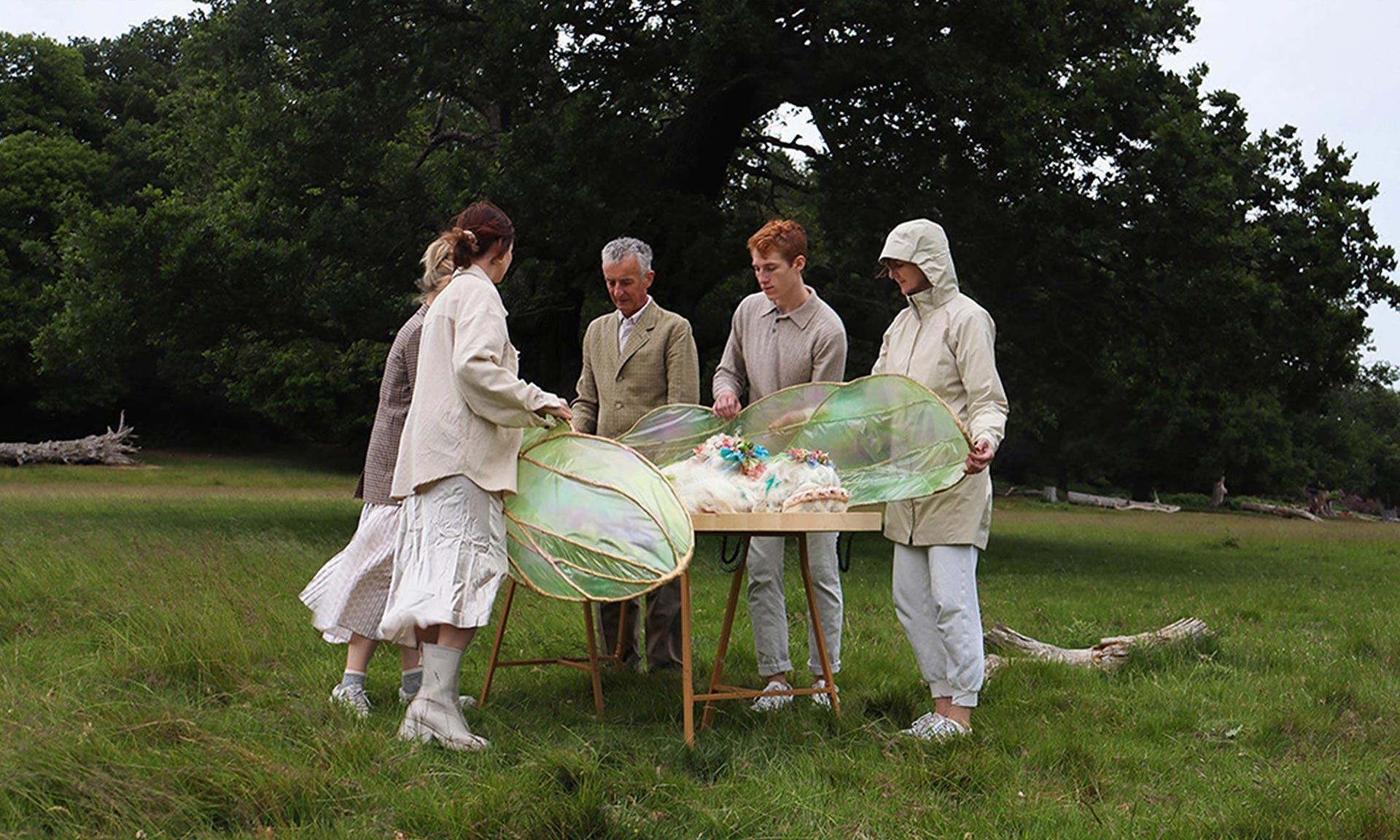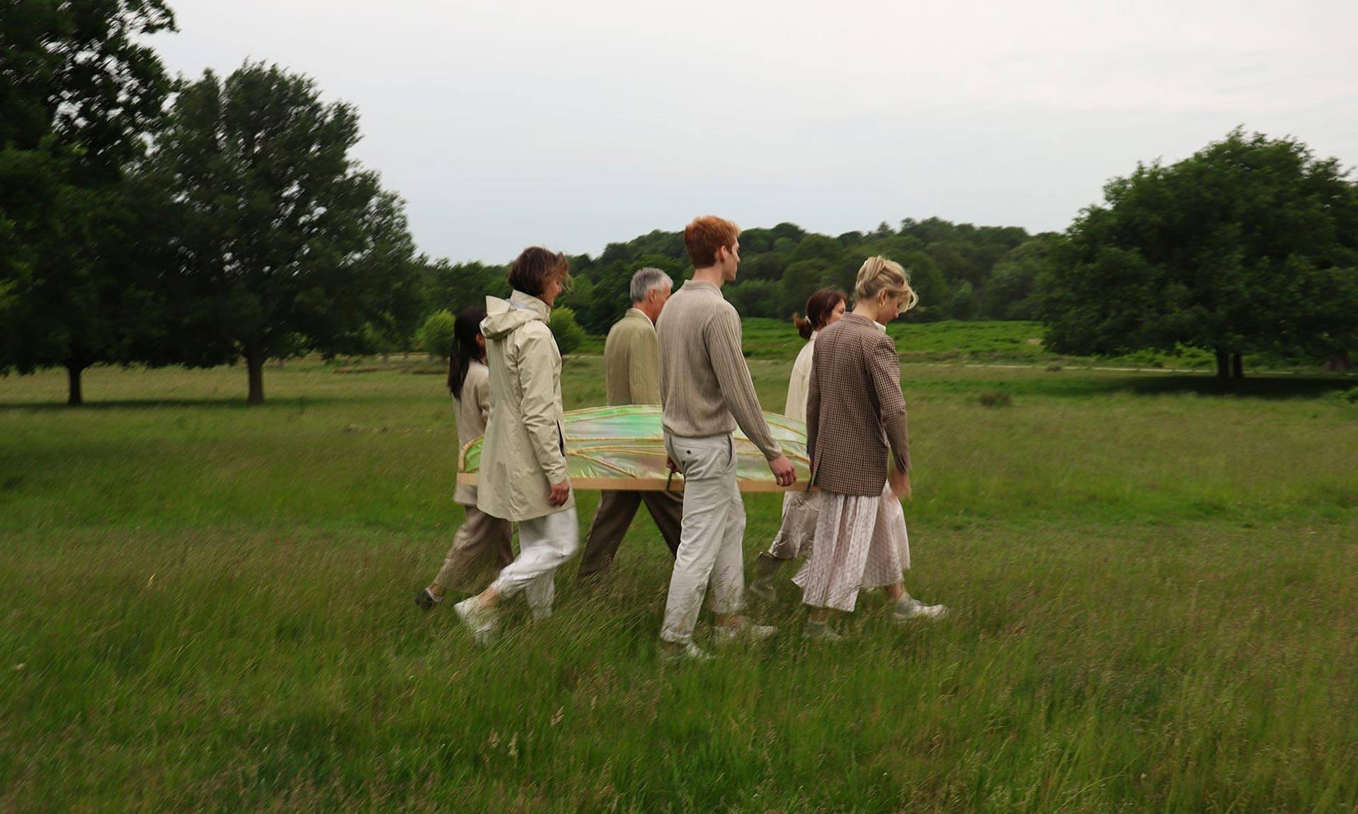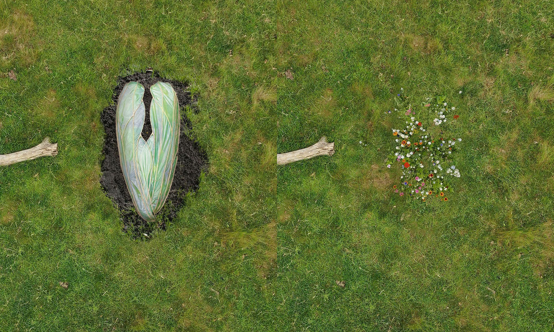 „První částí procesu je umístění těla na dřevěný trám, které je poté zahaleno do obřadního závoje a pokryto okřídleným kokonem, vyrobeným výhradně z biomateriálů. Tělo je převezeno na přírodní pohřebiště, které bylo certifikováno pro renaturaci půdy. Následuje pěší průvod a obřad, jehož průběh je choreograficky přizpůsoben víře zesnulého. Křídla jsou odstraněna a trám spuštěn do země. Nakonec je hrob zakryt a křídla položena na vrch. Křídla obsahují semena původních divokých květin. Jakmile přijde déšť, biomateriály se rozpustí v zemi a vyraší nový život. Hrob se stane přírodní zahradou, čímž se dokončí přechod od individuálního k kolektivnímu. Materiály použité v tomto projektu jsou zcela biologicky rozložitelné a byly vyvinuty designérem ve spolupráci s Nikolet Kostur, technikem biomateriálů na Royal College of Art,“ dodává k projektu, který vytvořila pro sebe včetně posmrtné masky z bio materiálů a designem květin.