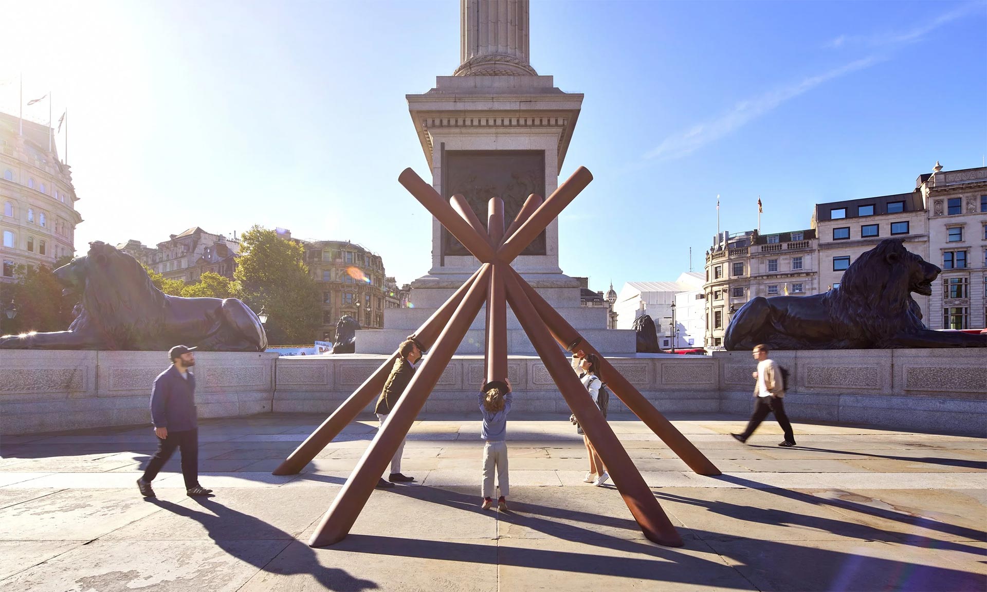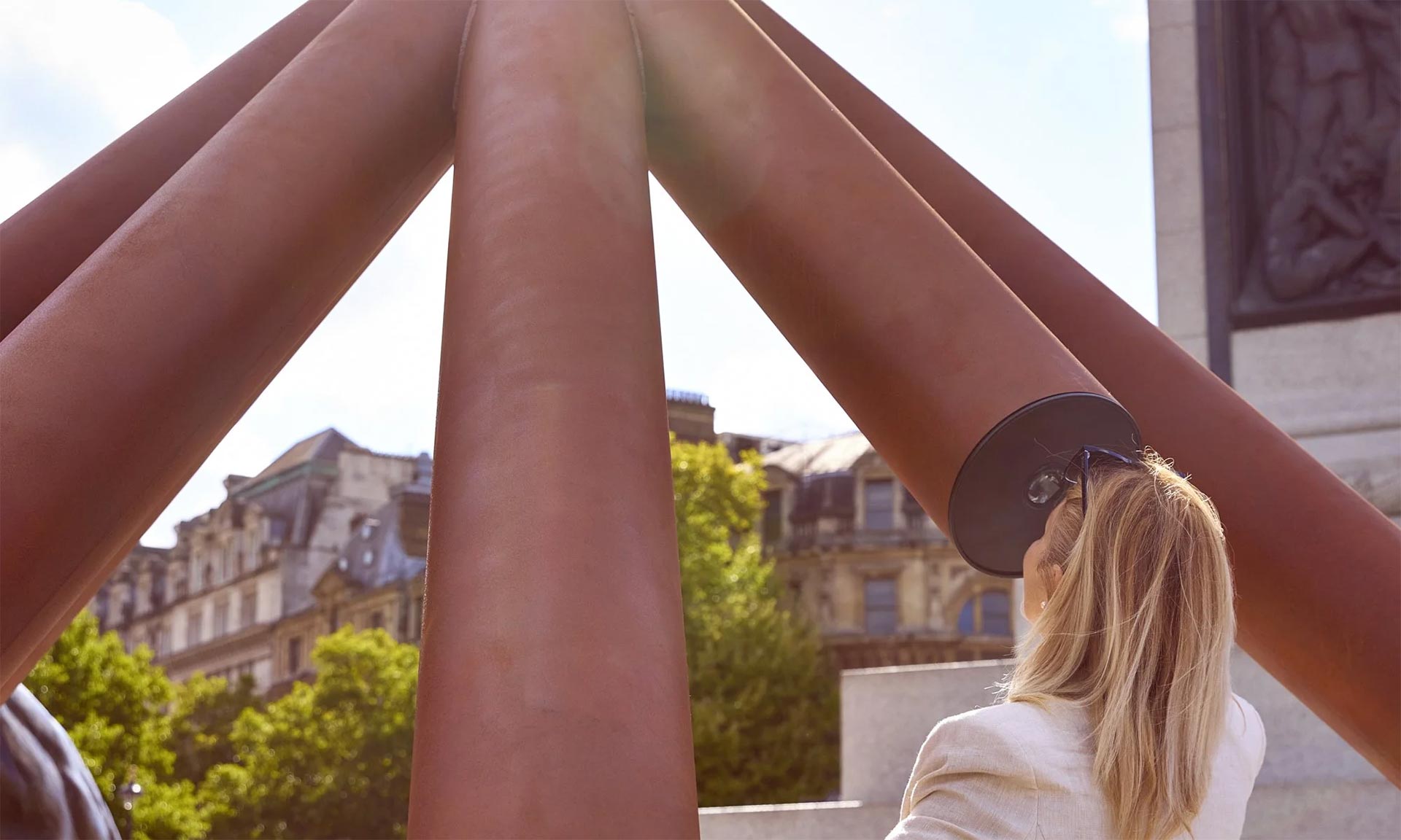 „Umístěná na podstavci Nelsonova sloupu na Trafalgarském náměstí během London Design Festivalu 2025, instalace What Nelson Sees ve spolupráci s Google Arts and Culture nabídla návštěvníkům bezprecedentní příležitost prožít Londýn z Nelsonova pohledu z vrcholu sloupu a odhalila perspektivy města, které dosud nebyly veřejnosti přístupné. Socha se skládala z řady protínajících se trubek, které vytvářely samostatně stojící strukturu. Tyto linie tvořily teleskopické pozorovací portály, které zvali návštěvníky, aby se podívali skrz ně a objevili panorama Londýna z Nelsonova úhlu pohledu,“ uvádí k projektu Paul Cocksedge.