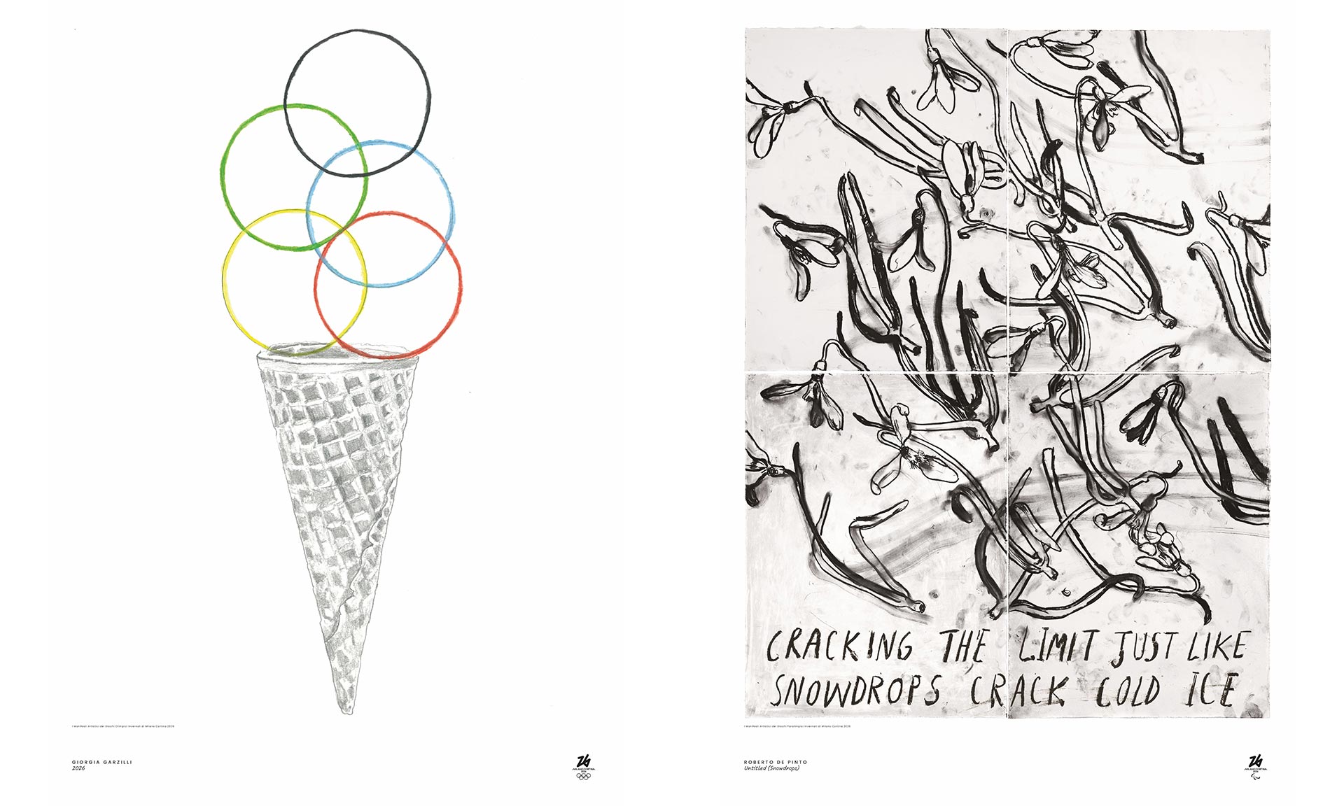 Mimo dvou oficiálních běžně dostupných plakátů k současným Zimním olympijským hrám Milano Cortina 2026, které vytvořili Olimpia Zagnoli a Carolina Altavilla, vznikla série výtvarných plakátů. Ve spojení s legendární organizací Triennale Milano vytvořili mladí italští umělci pět plakátů k olympijským a pět plakátů k paralympijským hrám. Reflektují různé umělecké směry i důvtip.