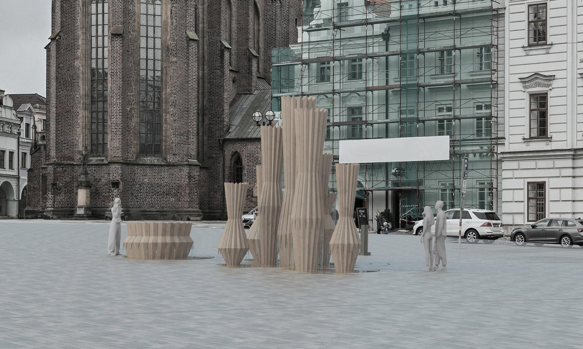 „Porota oceňuje: Významovou vrstevnatost a srozumitelnost návrhu. Originalitu řešení a architektonický detail v souvislosti s historií a architekturou města. Interaktivitu, hravost, rozmanitost a přístupnost souboru prvků umístěných na úrovni dlažby, do kterých lze vstoupit a bezprostředně je zažít. Bezbariérovost a to, že návrh vhodně reaguje na svažitý terén náměstí. Zpřesnění koncepce a sochařského ztvárnění díla, včetně požadovaných detailů. Technickou vyspělost návrhu, která přesvědčila porotu o realizovatelnosti a dlouhodobé udržitelnosti návrhu. Částečnou úpravu proporcí plastických prvků dle podnětu poroty. Novodobou formu, která vhodně vstupuje do dialogu s historickým kontextem náměstí a jeho prvky a dominantami. Potenciál návrhu stát se novodobým a nezaměnitelným symbolem města,“ uvádí k vítěznému návrhu porotci.