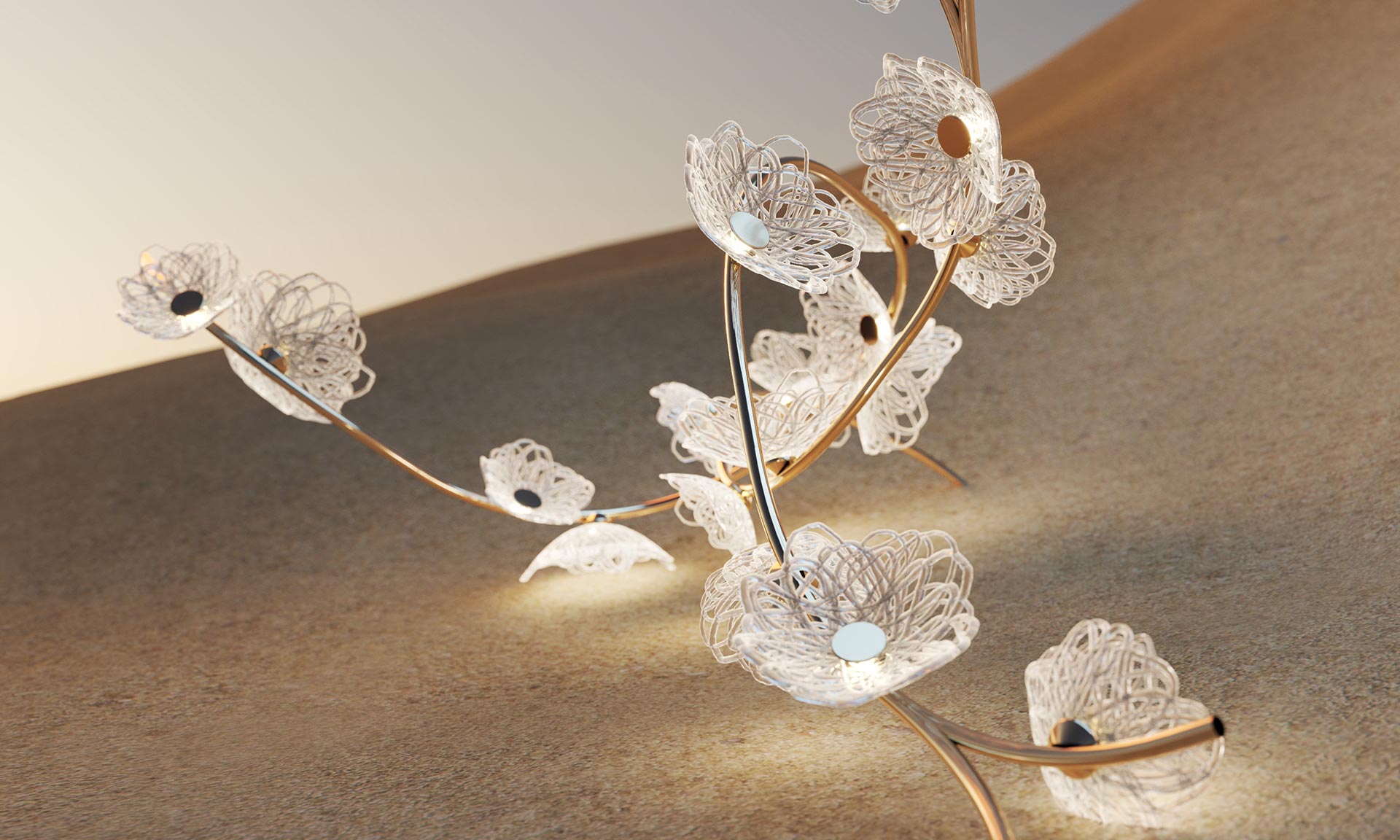 „Pro mě je zde rozhodující pohyb. V rostlinné říši je tak pomalý, téměř nepostřehnutelný, takže se musíte podívat zblízka. Objevil jsem ho u popínavých rostlin, které jako by se vznášely a jejich stonky vyznačují cestu, kterou se ubírají. Právě v tom téměř nepostřehnutelném pohybu spočívá krása, kterou jsem hledal,“ řekl designér Martin Gallo.