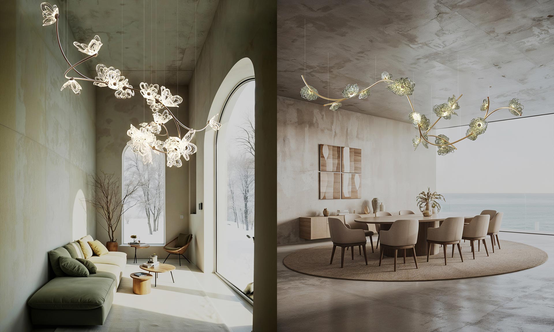 „Základem kolekce Rosa je flexibilní systém ručně vyráběných skleněných prvků. Jednotlivé komponenty lze spojovat, opakovat a přeskupovat, díky čemuž se instalace může organicky rozrůstat v jakémkoli prostoru. Ať už jde o jediný zářící květ nebo sochařský baldachýn, který zaplní celou místnost, kolekce Rosa dokládá technickou dokonalost řemeslníků společnosti Lasvit a jejich schopnost převést rytmy přírody do trvalého designu,“ dodává značka Lasvit.
