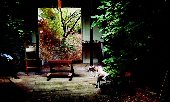 Výstava v Centre Pompidou má čtyři části. První se tematicky zabývá ateliérovým interiérem a exteriéry městských krajin, u kterých se nebrání zobrazení špíny a dávno zašedlé krásy. Druhá část je zaměřená na autoportréty, třetí na parafráze děl starších malířů (Cézanne, Constable, Picasso, atd.) a nechybí skupina neurvale realistických figurálních kompozic a aktů.