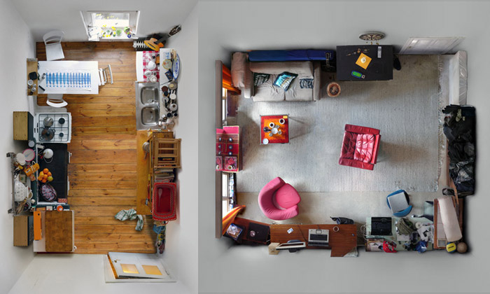 Německý fotograf Menno Aden má velmi nezvyklé cíle svého hledáčku. Mezi jeho nejoceňovanější a zároveň nejpozoruhodnější sérii patří Room Portraits, záběry pokojů z pohledu stropu. Fotograf si pro zhotovení velkoformátových snímků nevybírá jen uklizené pokojíčky, ale i opuštěné byty, garáže, restaurace, lékařské ordinace nebo třeba metro.