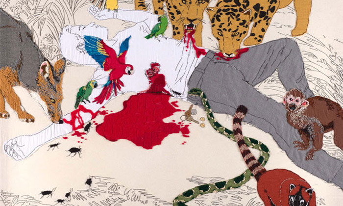 Ana Teresa Barboza je peruánská umělkyně, jejíž tvorba zahrnuje díla, která jsou vytvořená pomocí vyšívání, pletení nebo háčkování. Nejčastějším tématům, kterým se věnuje, je člověk ve spojení s přírodou, popřípadě vytváří krajinu, která vychází i mimo vyšívací obruč a zasahuje tak do prostoru.