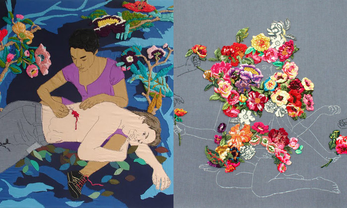 Dalšími motivem bývá člověk. Zde se soustřeďuje buď na detaily. Například v cyklu Make-up,nebo tvoří postavy, které si šijí do kůže nebo ji trhají, což může znít morbidně, ale dílo i přesto vypadá jemně. V neposlední řadě tvoří moře nebo zelenou krajinu, která přesahuje vyšívací obruč a hrne se do prostoru.