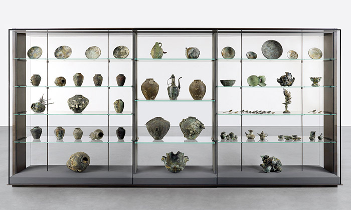 Nejdominantnějším prvkem výstavy je socha Damen with Bowl, která je umístěna v Palazzo Grassi na nádvoří. Díky své velikosti vidí návštěvníci při příchodu pouze její nohy a socha muže se v celé své velikosti ukáže až při přiblížení. O velké artefakty není nouze ani ve výstavních prostorách. Najdeme zde například kamenný kalendář, plovoucí sochy, sfingy, torza nahých žen či obrovské kostry zvířat.