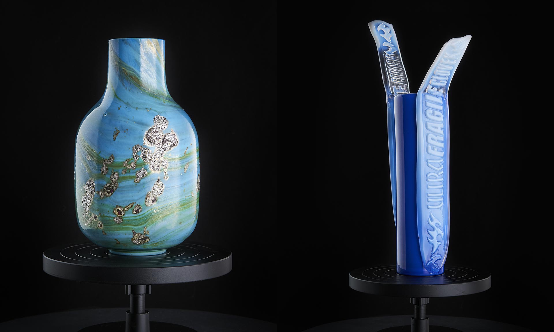 „Sklářství je bazální proces, ve kterém můžeme smíchat ‚obyčejnou‘ hmotu a přetavit ji v něco nového. Amalín je místo, potažmo myšlenkový proces, ve kterém se snažím vytvořit z něčeho starého, něco nového, vlastního. Myslím, že není náhoda, že jsem tuto kolekci vytvořil po dlouhém roce pandemie. Amalín je kolekce originálních váz, která skrze primární barvy, jako je světle modrá, zelená a žlutá symbolizuje nový a pozitivní začátek. Amalín je moje nové sklo,“ říká Lukáš Novák, který již dříve vytvořil sérii váz technikou lithyalin.
